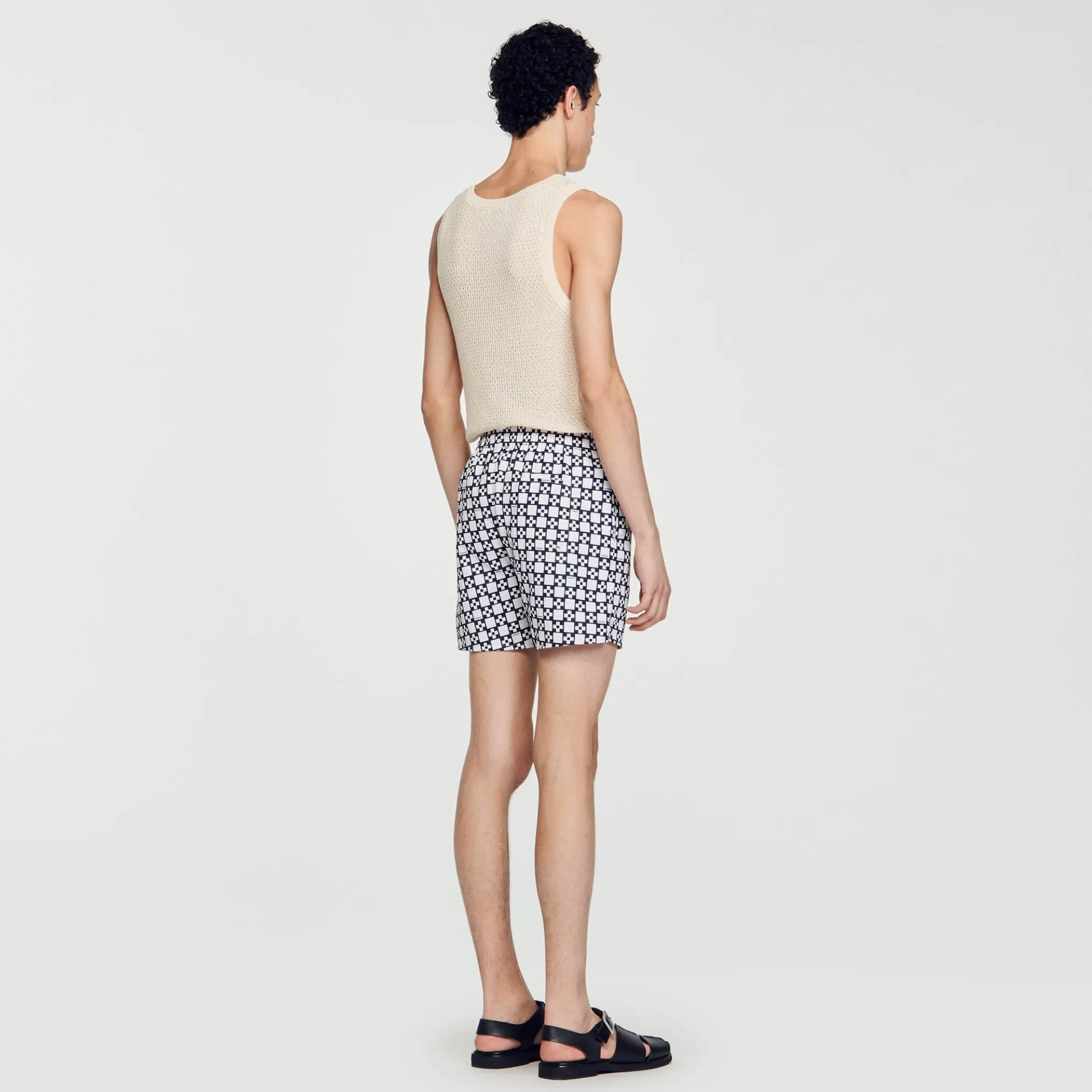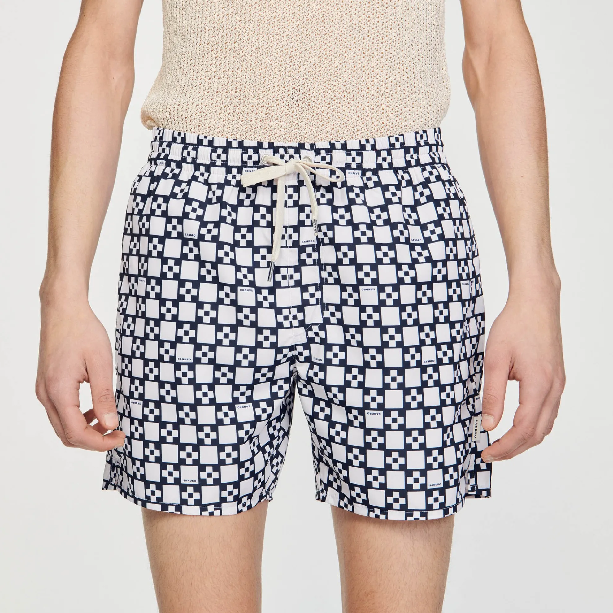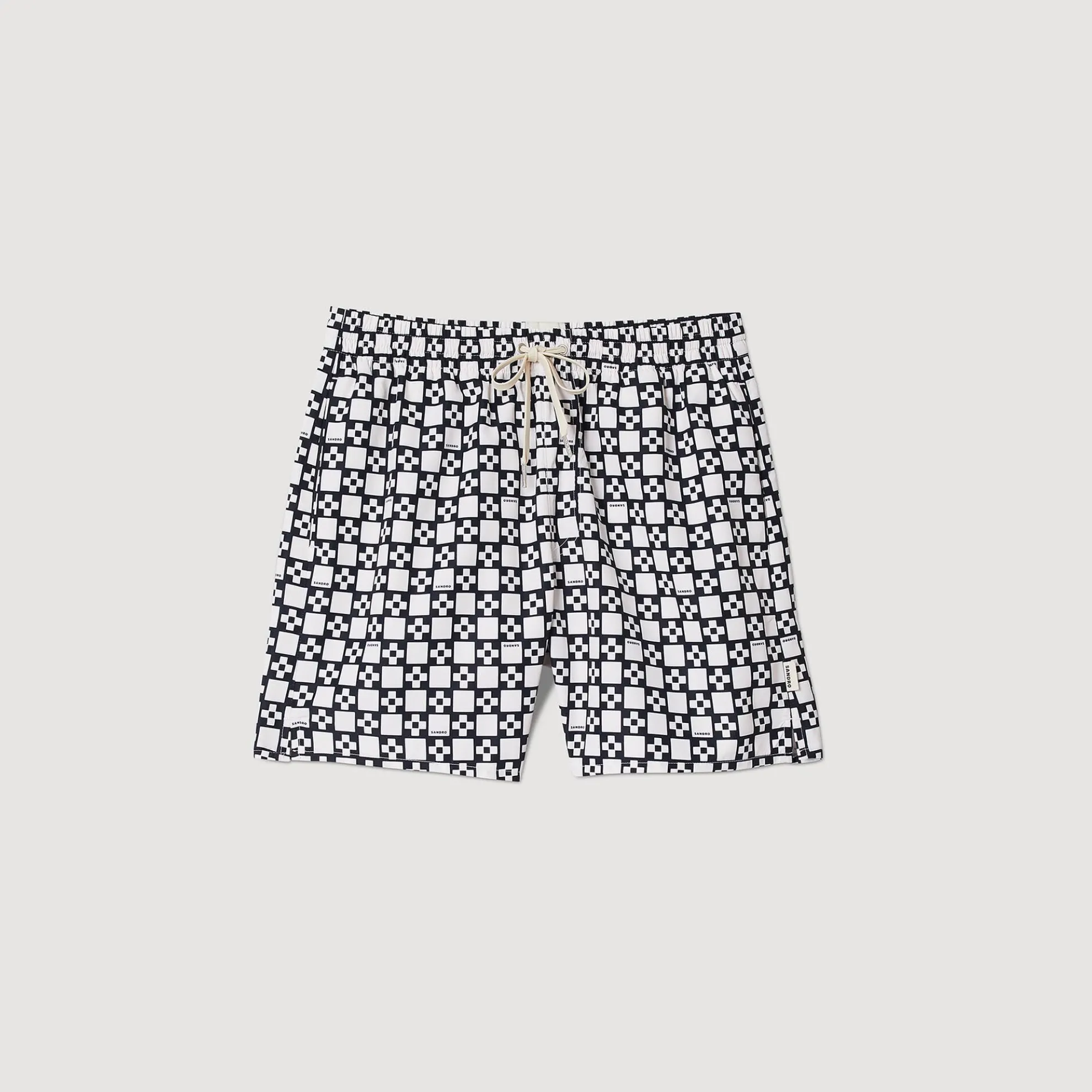 Zwembroek met square crossprint, een elastische taille achter, een trekkoord, opgestikte zakken op de achterkant en splitten aan de zijkant.