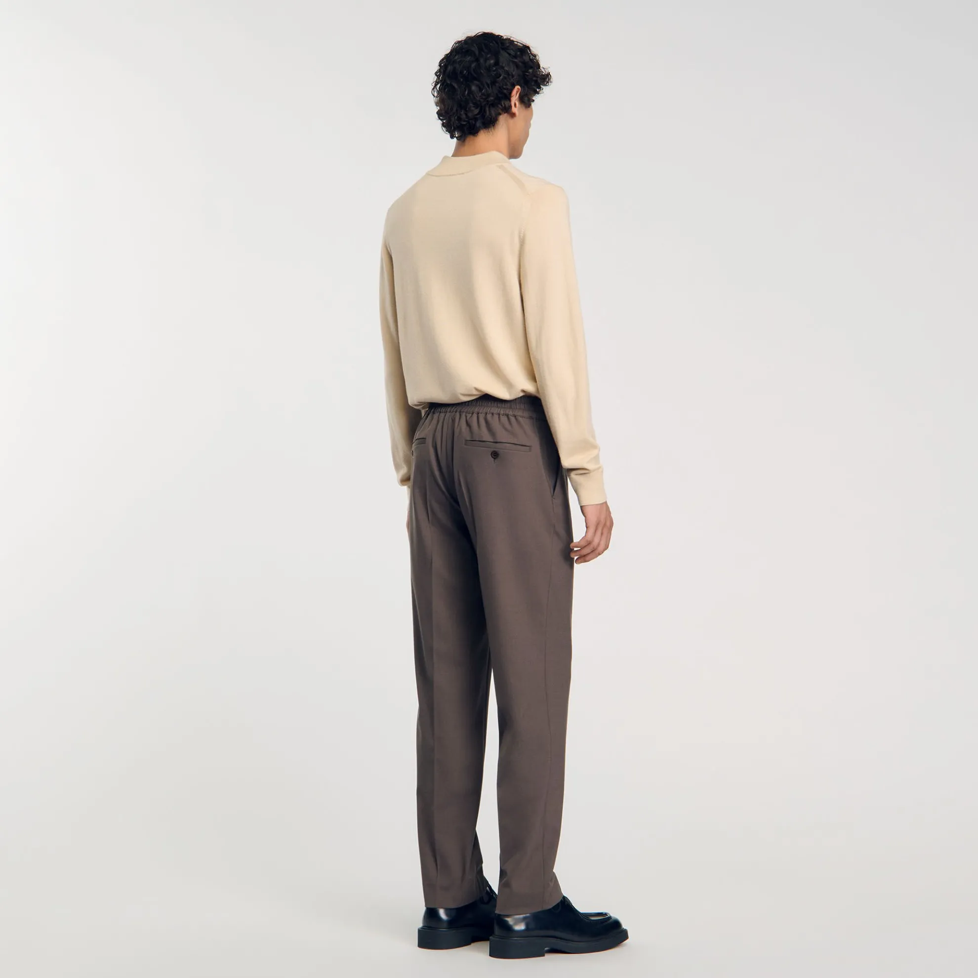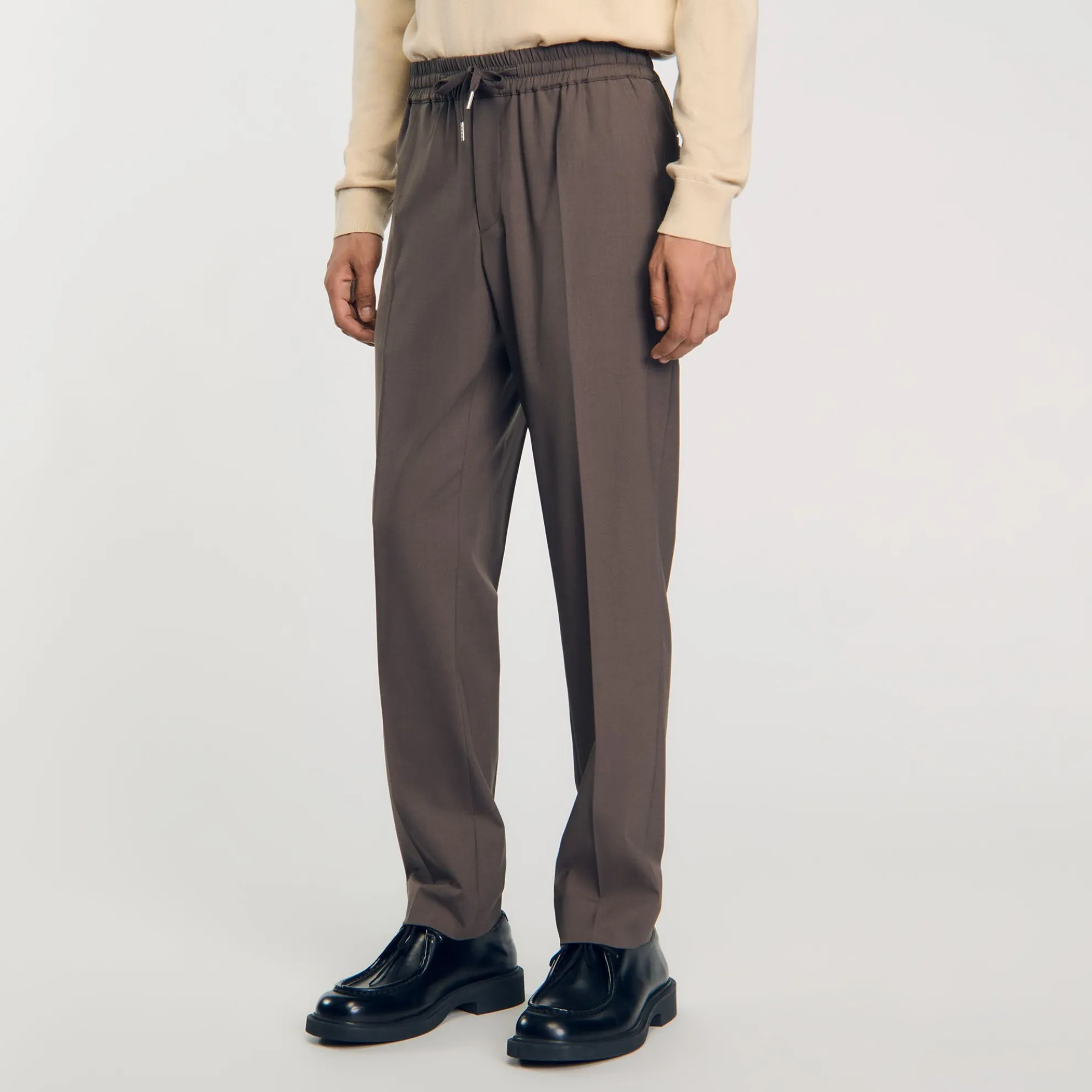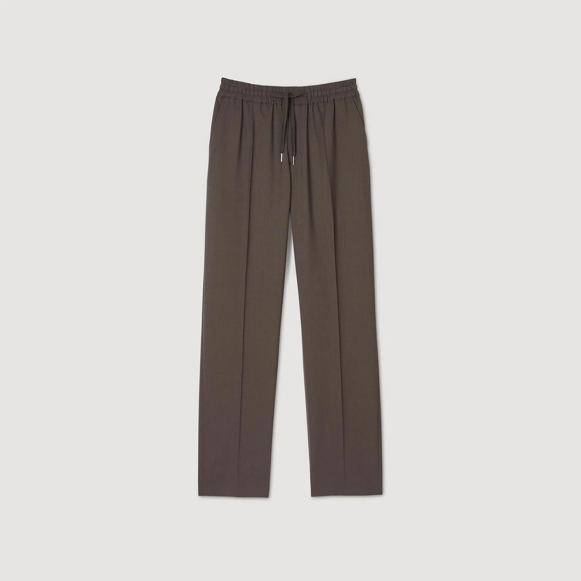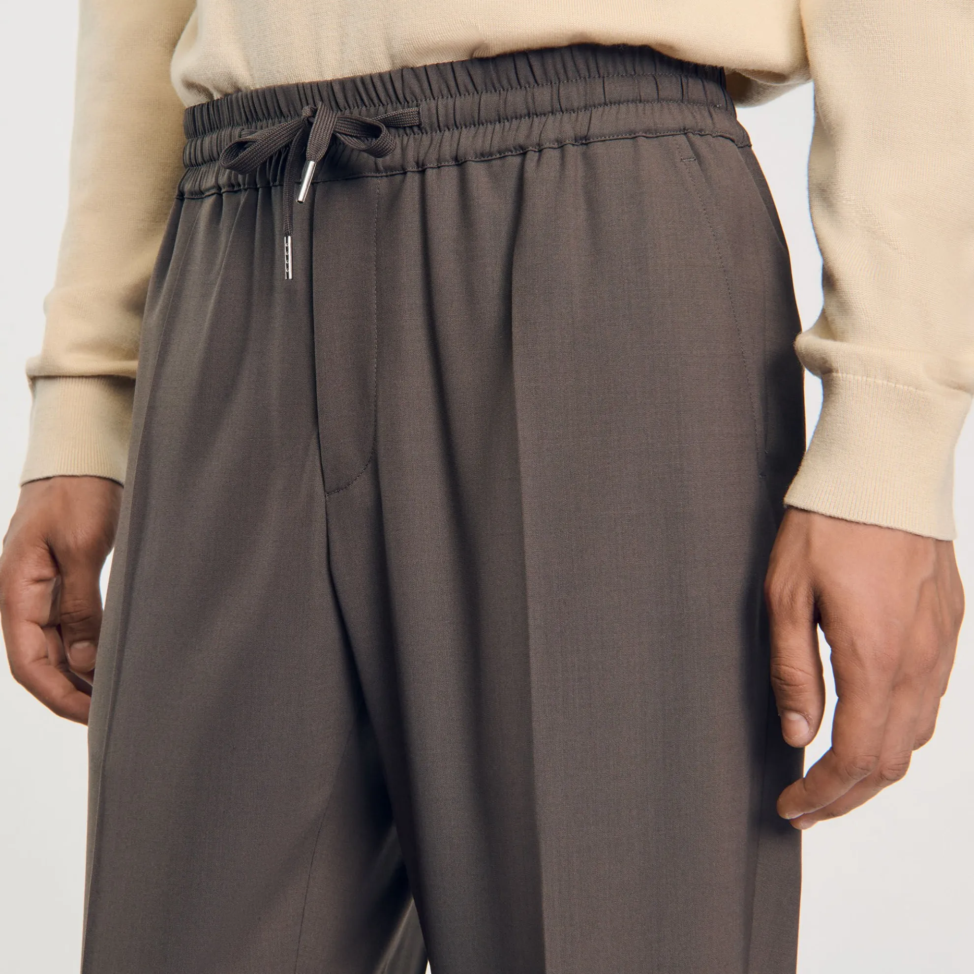 Pantalon met elastische taille en trekkoord, twee zakken en opvallende plooien.