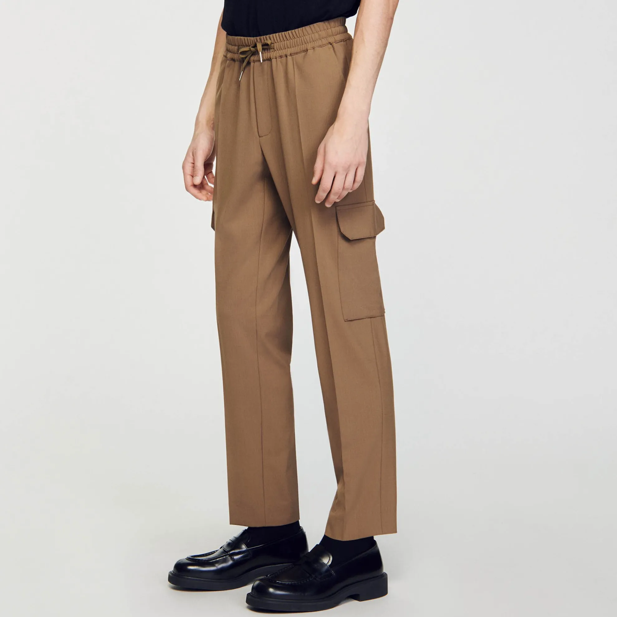 Cargobroek met elastische tailleband, twee grote zijzakken en een verstelkoord.