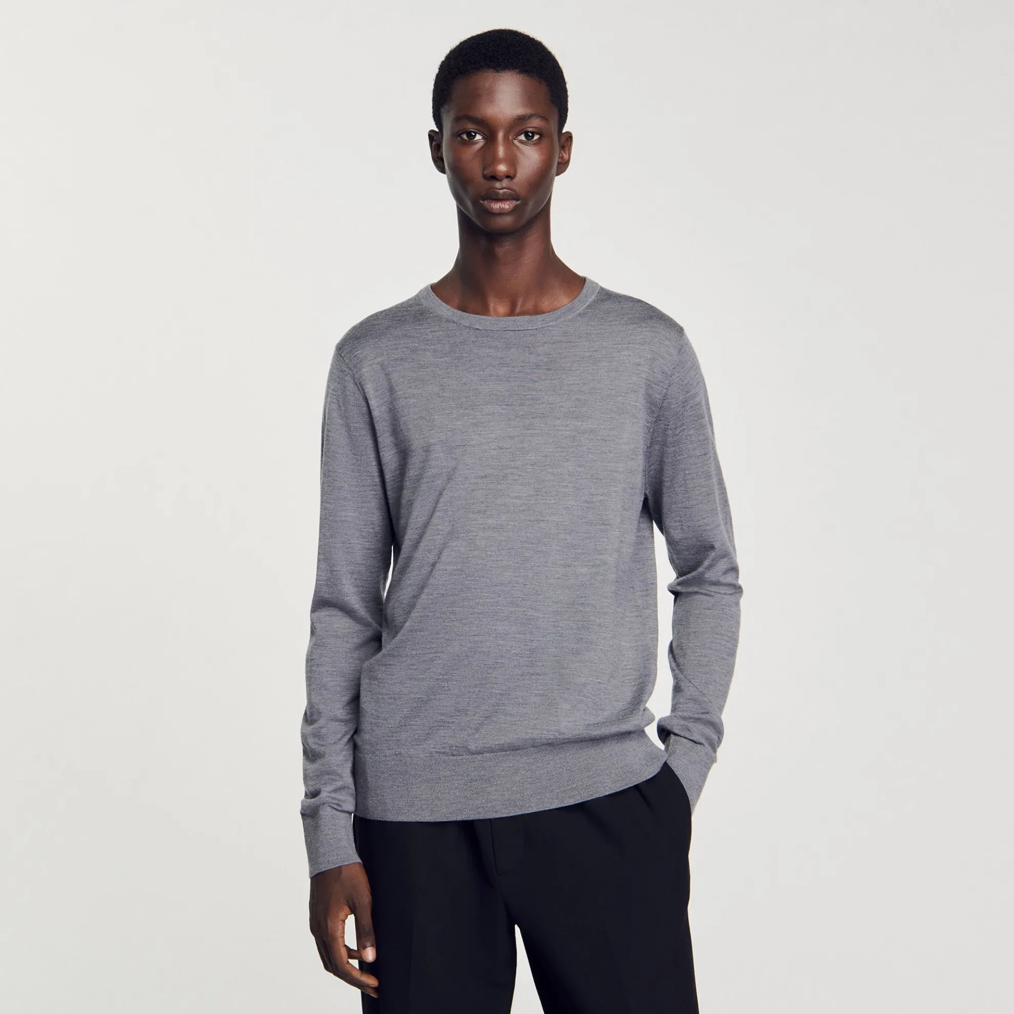 Soepele fijngebreide trui met ronde hals en lange mouwen.