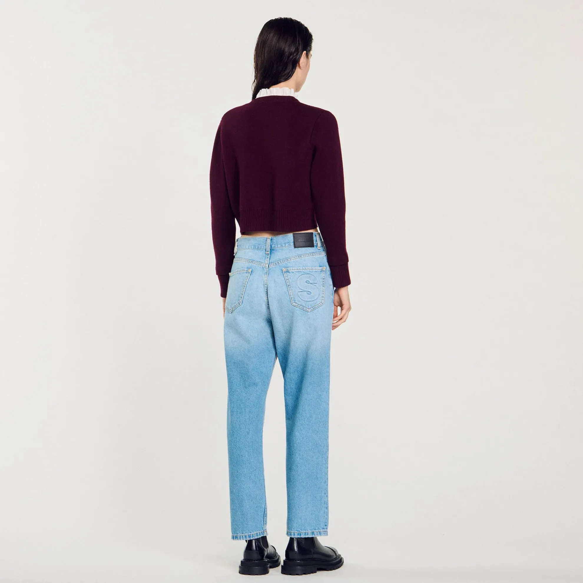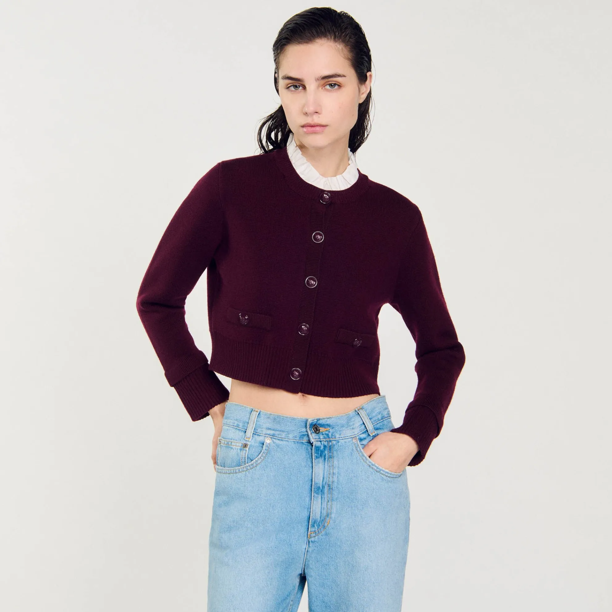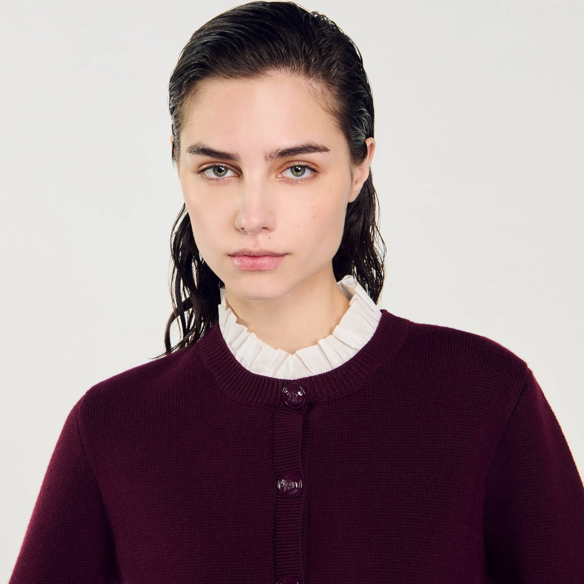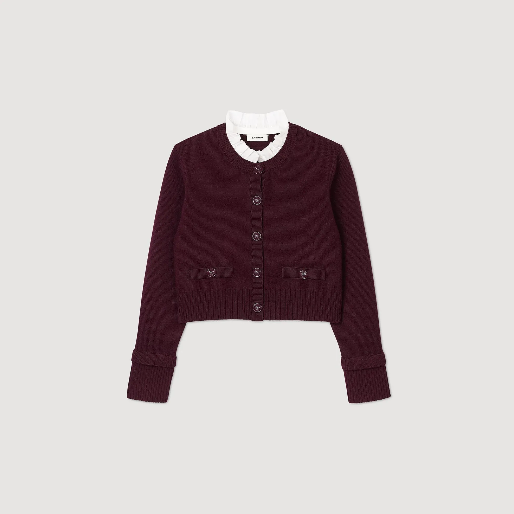 Kort vest met een afneembare, contrasterende kraag met ruches, lange mouwen, knoopsluiting en valse paspelzakken.