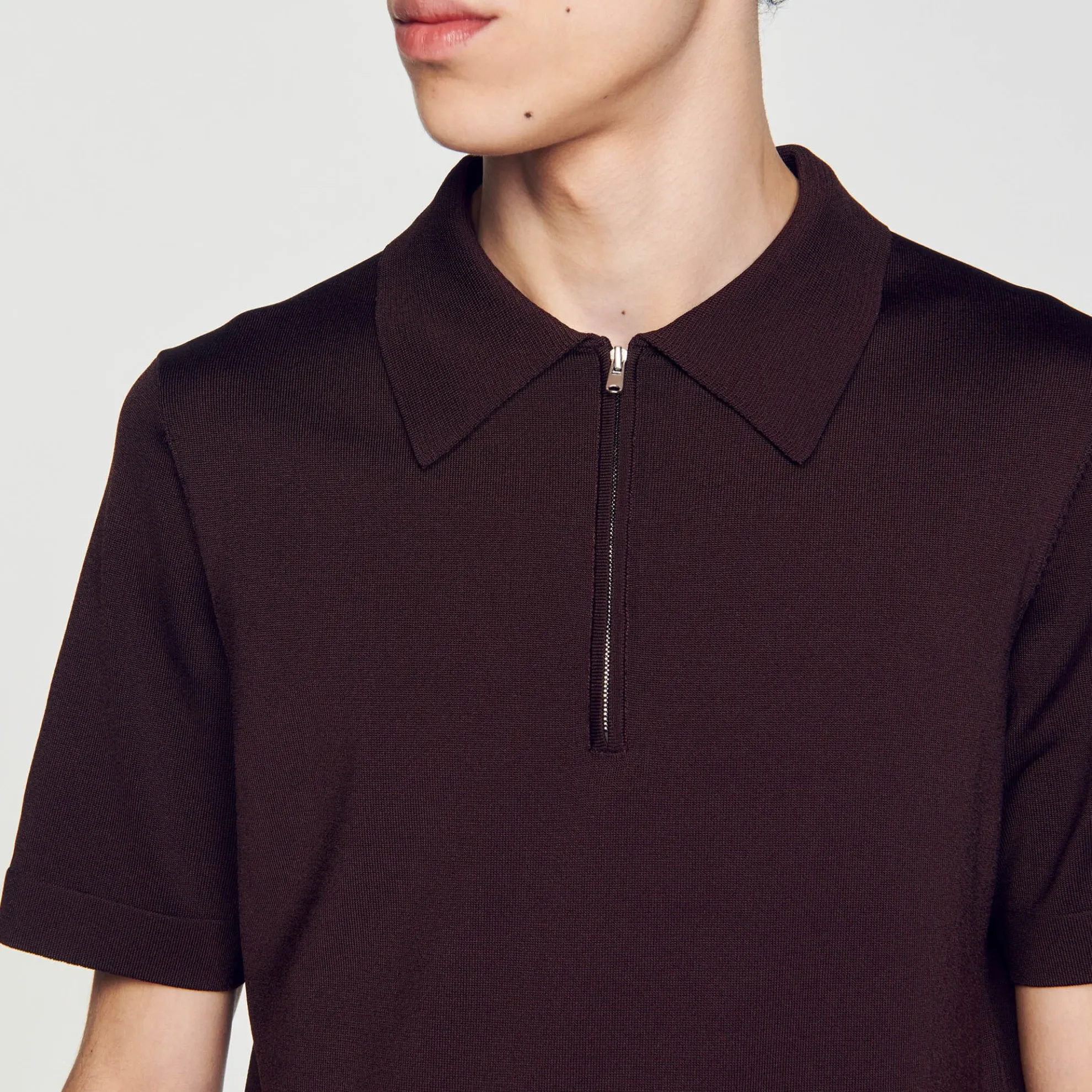 Gebreide polo met overhemdkraag met rits en korte mouwen.