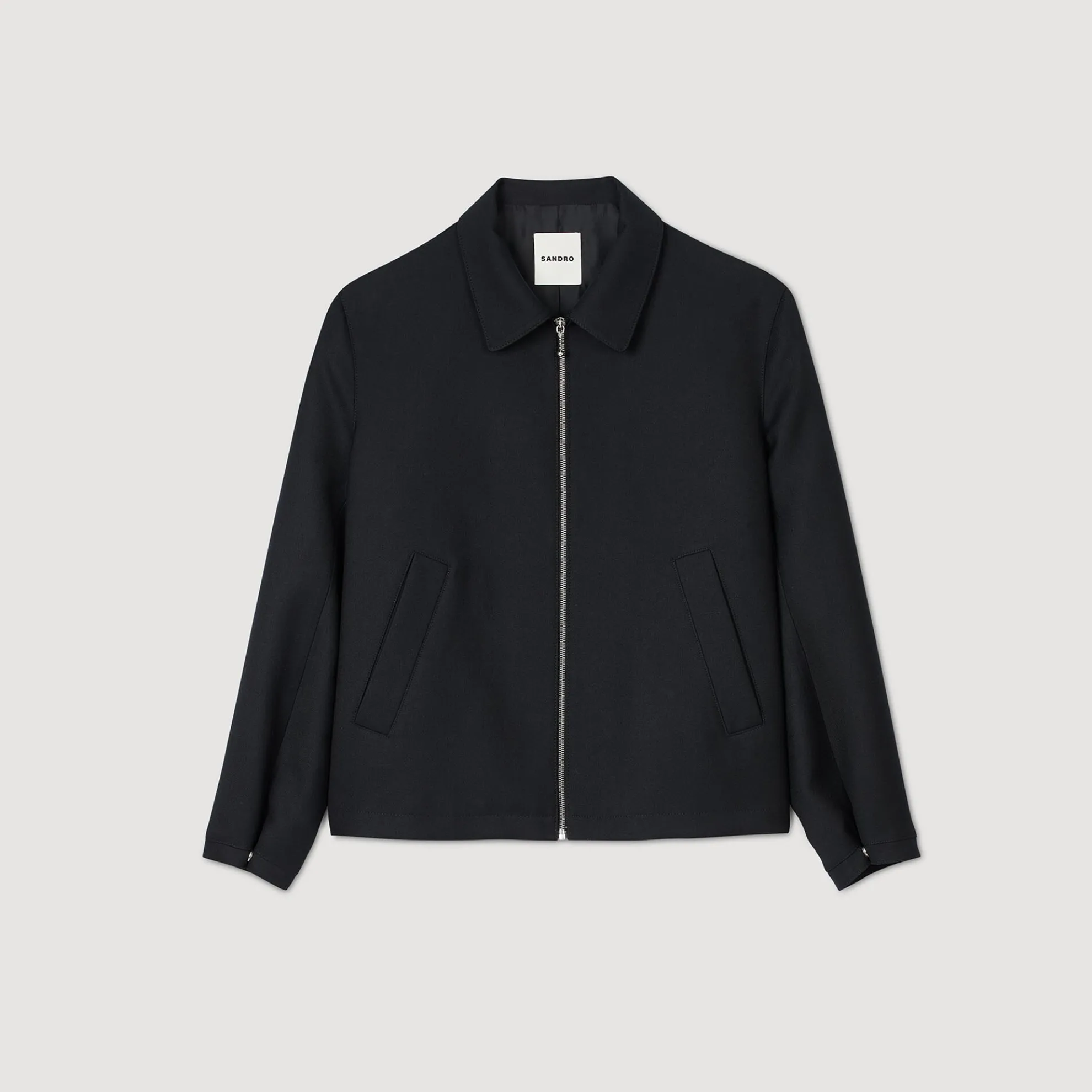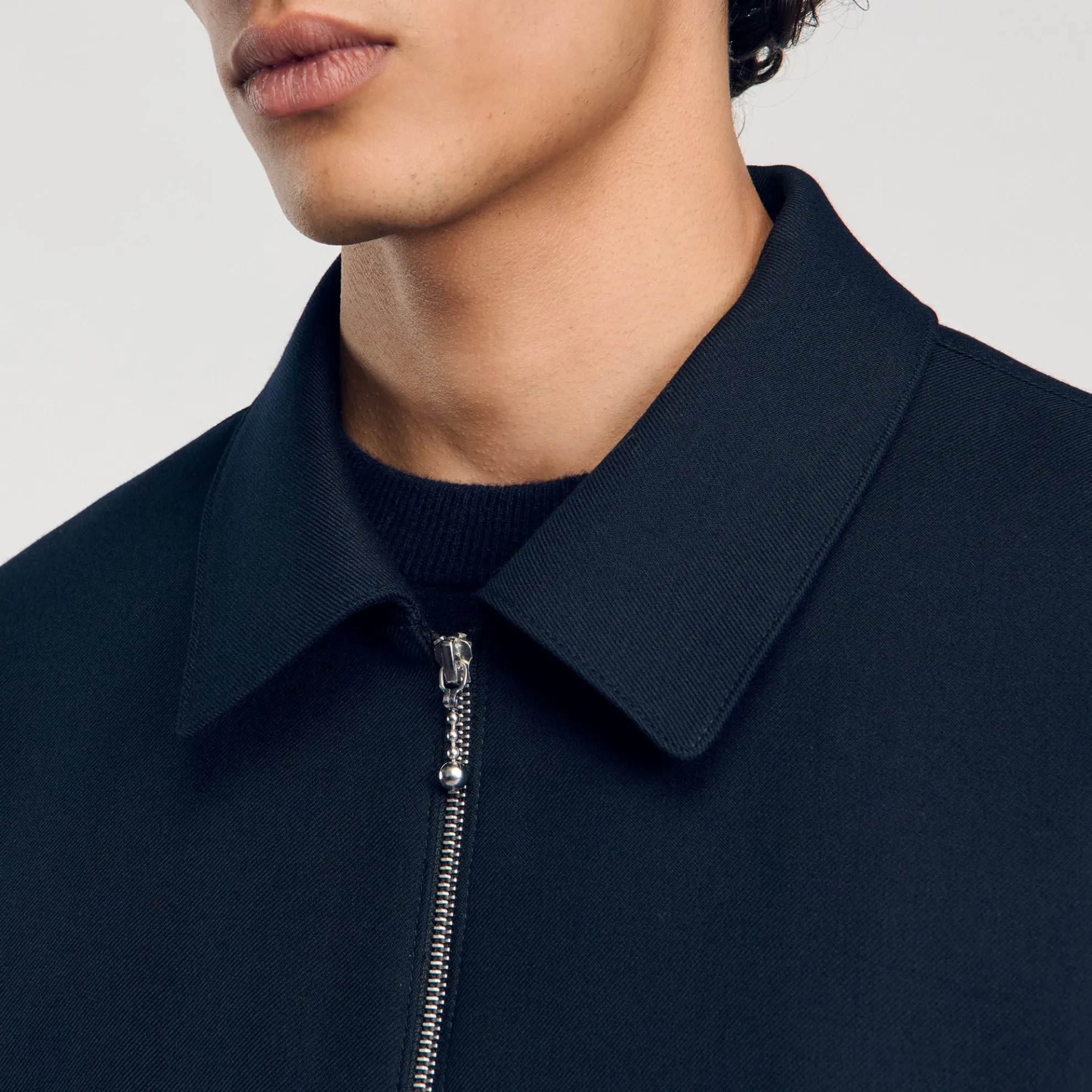 Jack met overhemdkraag, lange mouwen en ritssluiting.