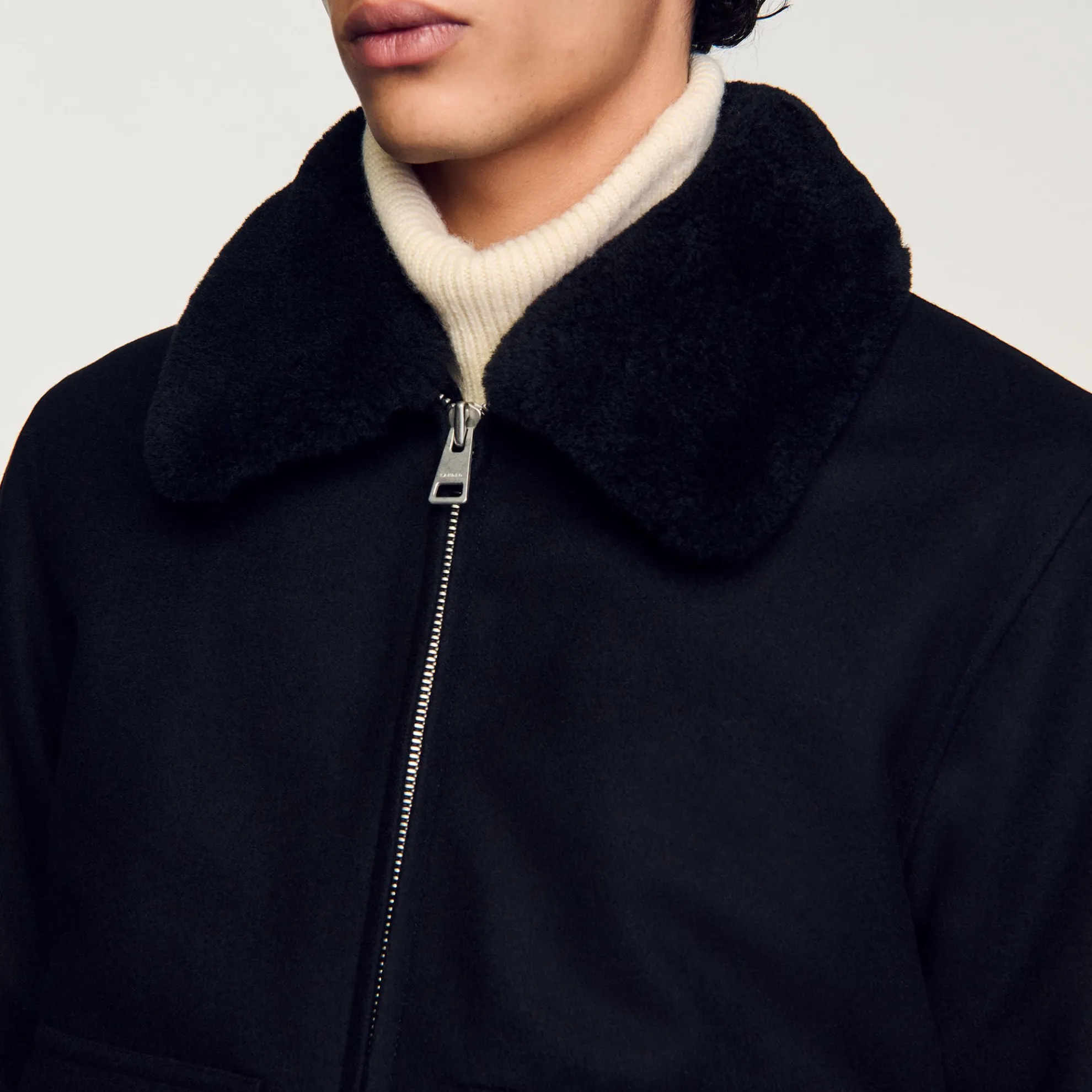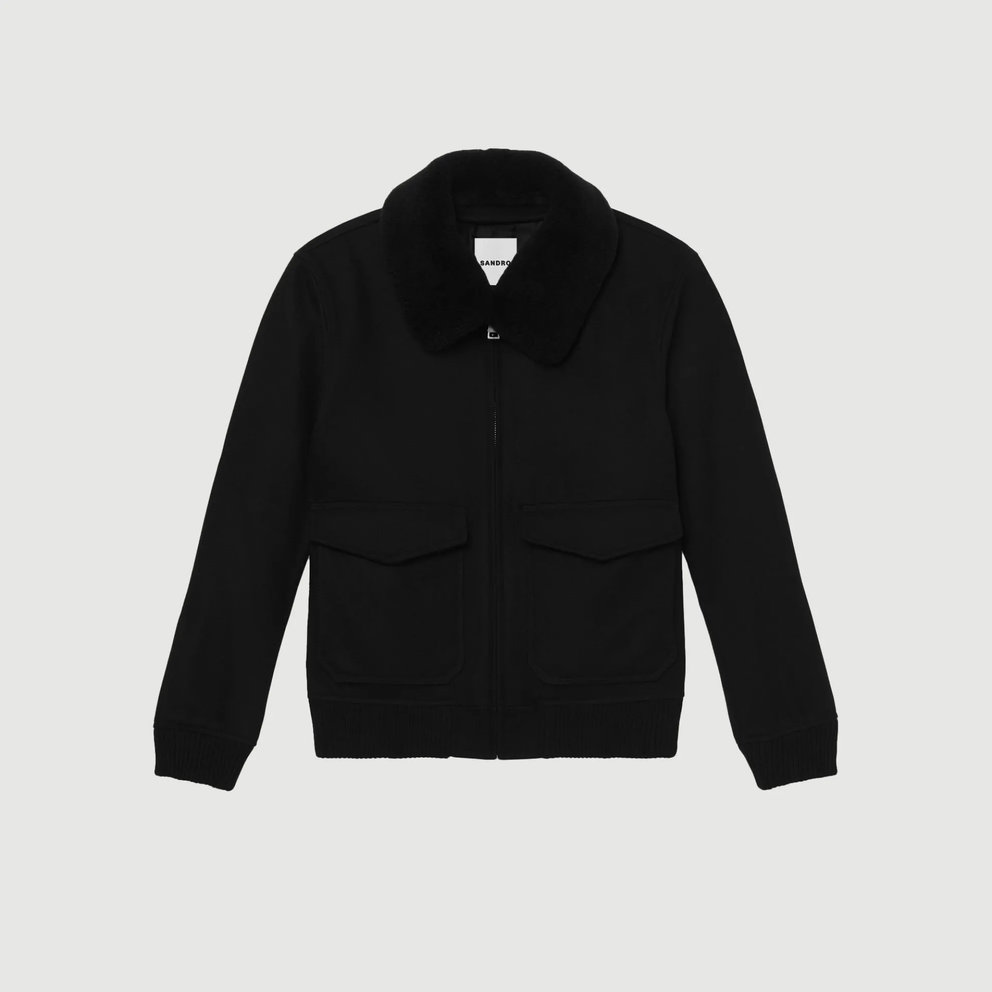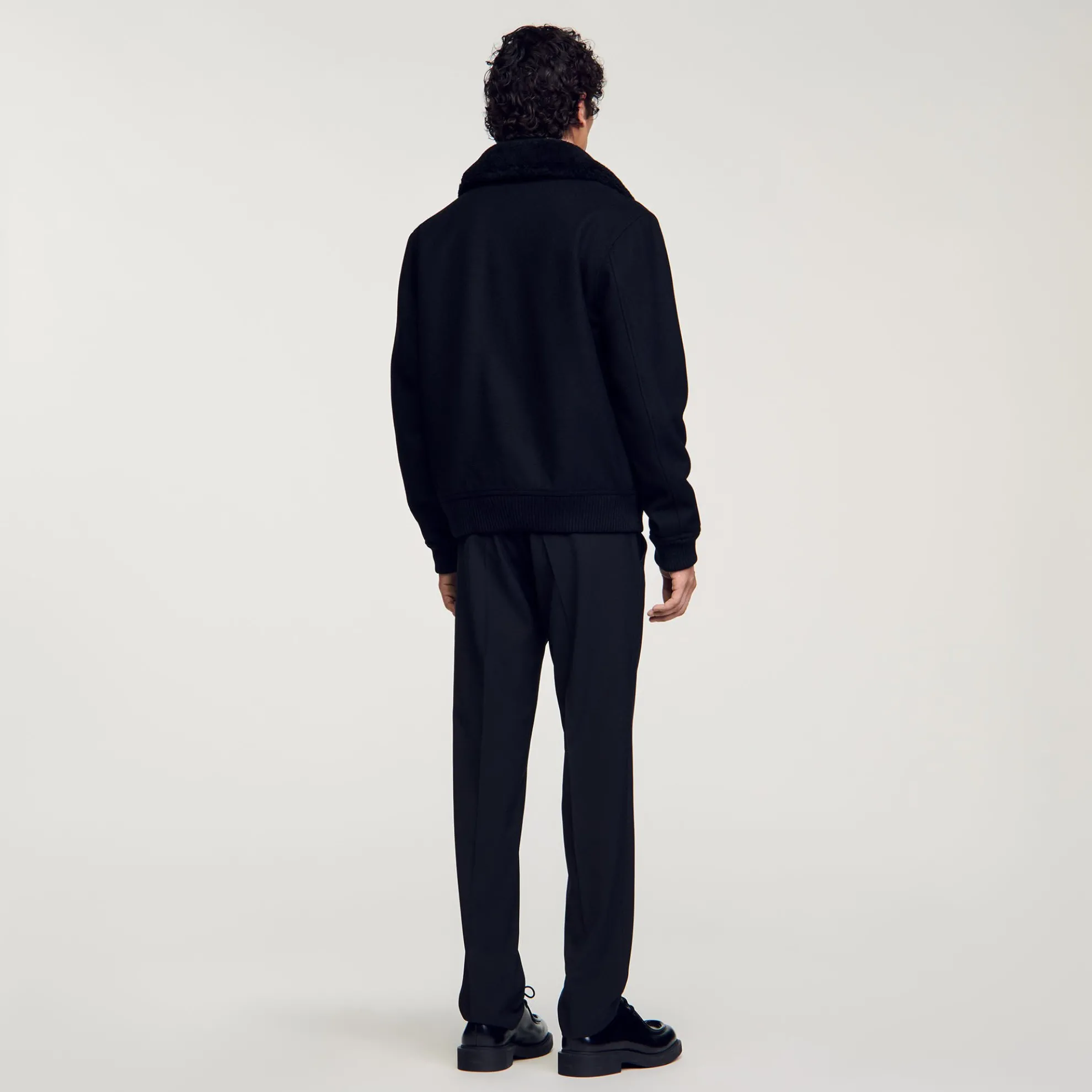 Jack met lange mouwen, overhemdkraag, ritssluiting, paspelzakken aan de voorkant, split aan de achterkant en binnenzak met ritssluiting.