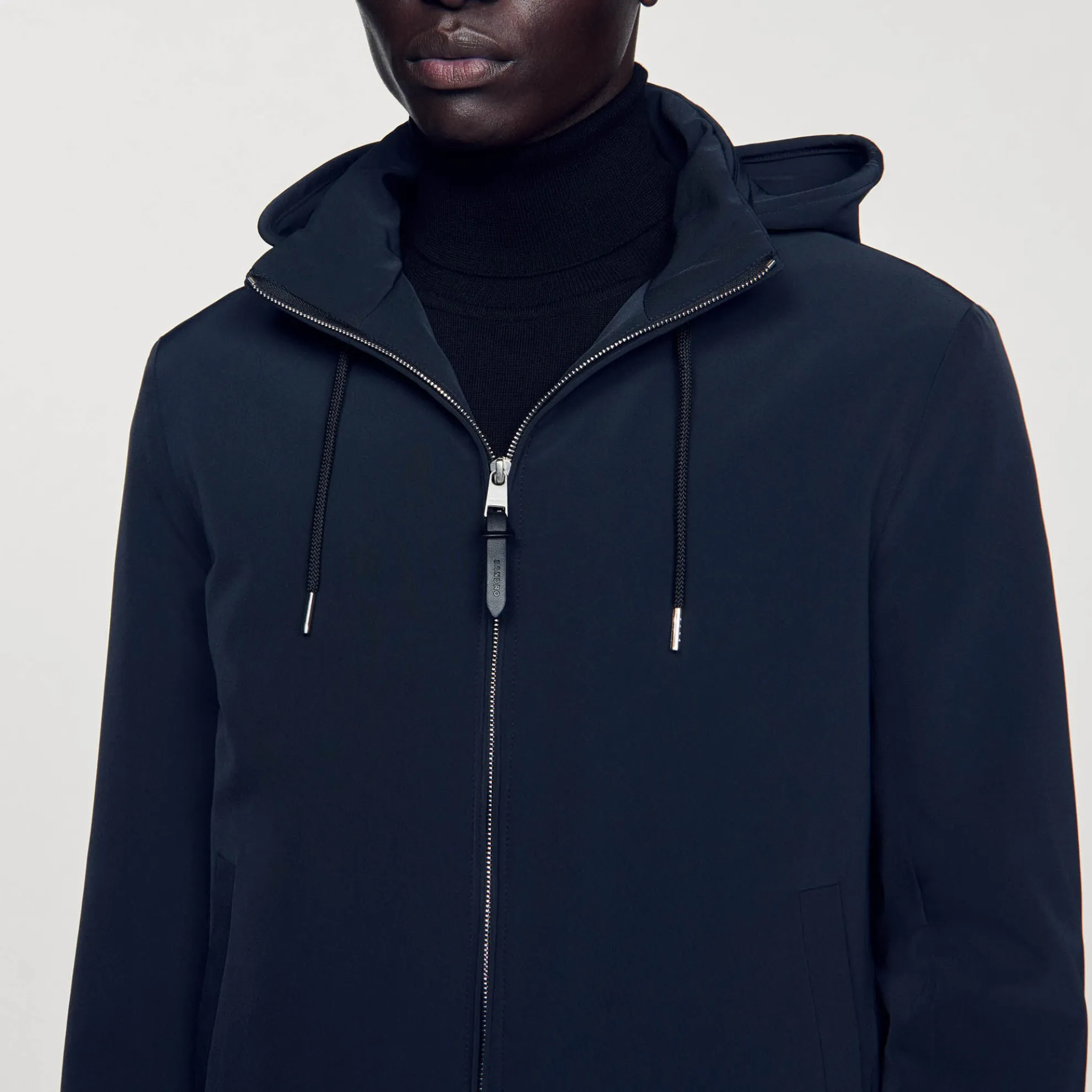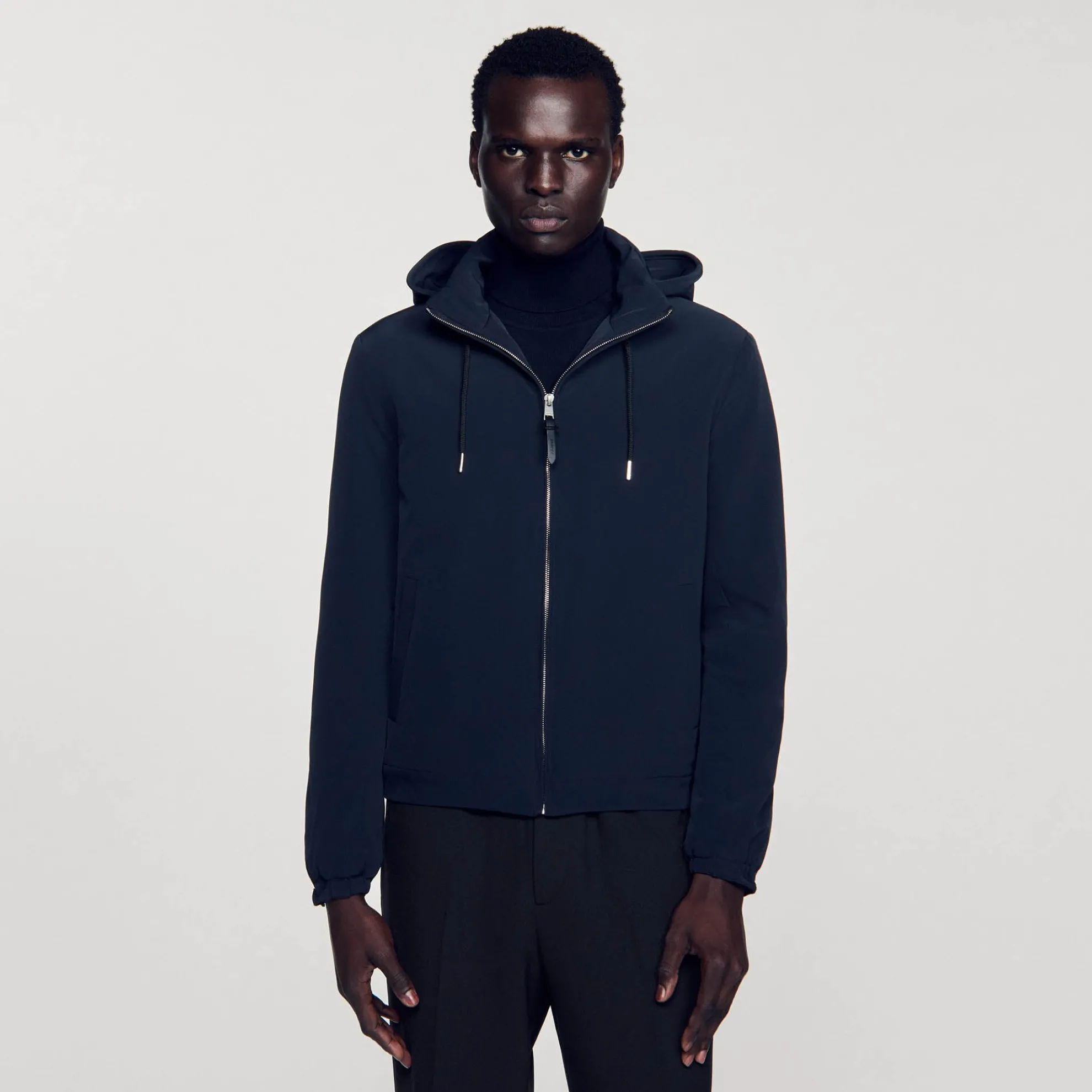 Herenjack Sandro • Jack van technische stof • Opstaande kraag met rits en capuchon • Trekkoord bij de capuchon • Opening met rits aan de voorkant • Paspelzakken aan de voorkant • Koordstopper aan de zoom van het kledingstuk • Elastische manchetten met pat voor straktrekken