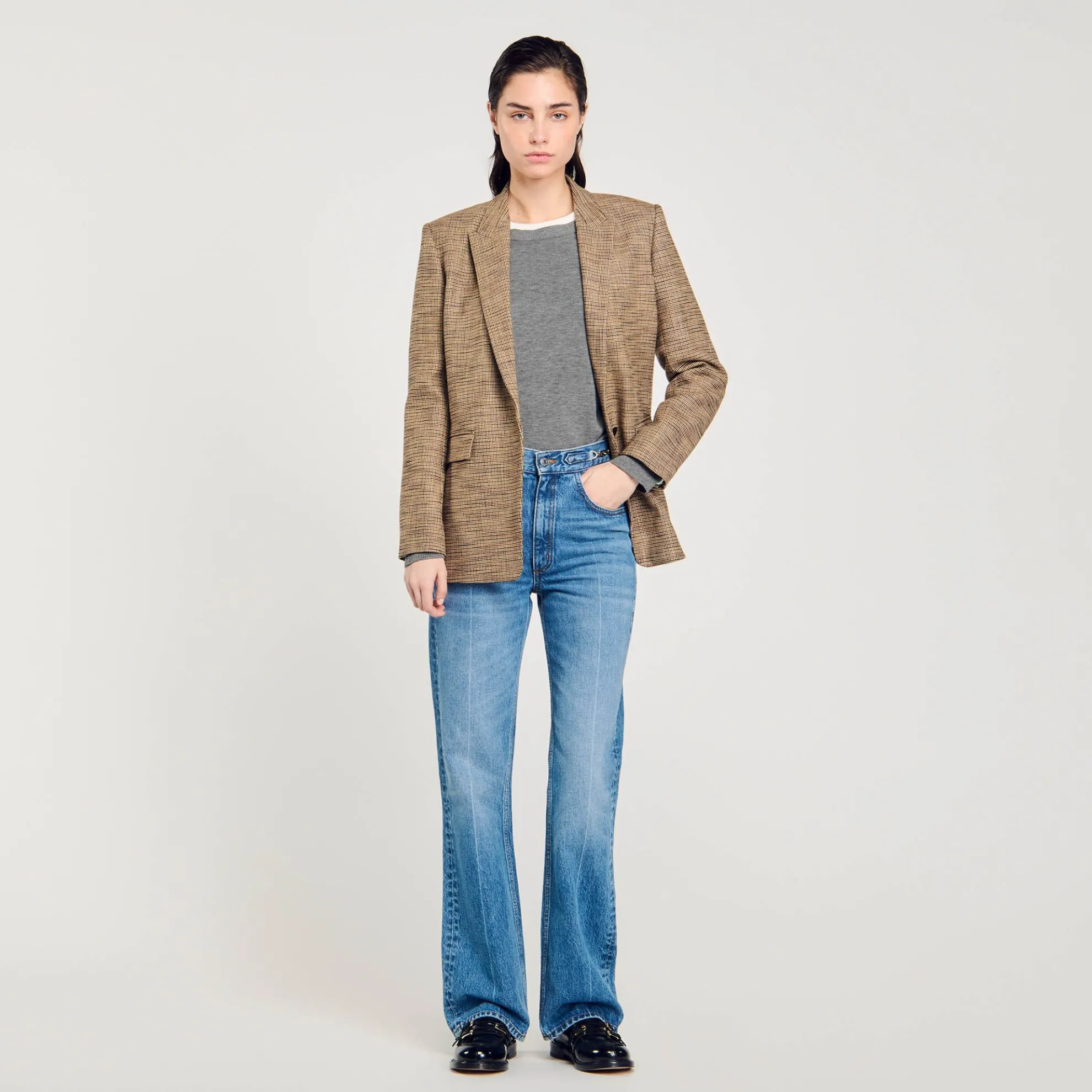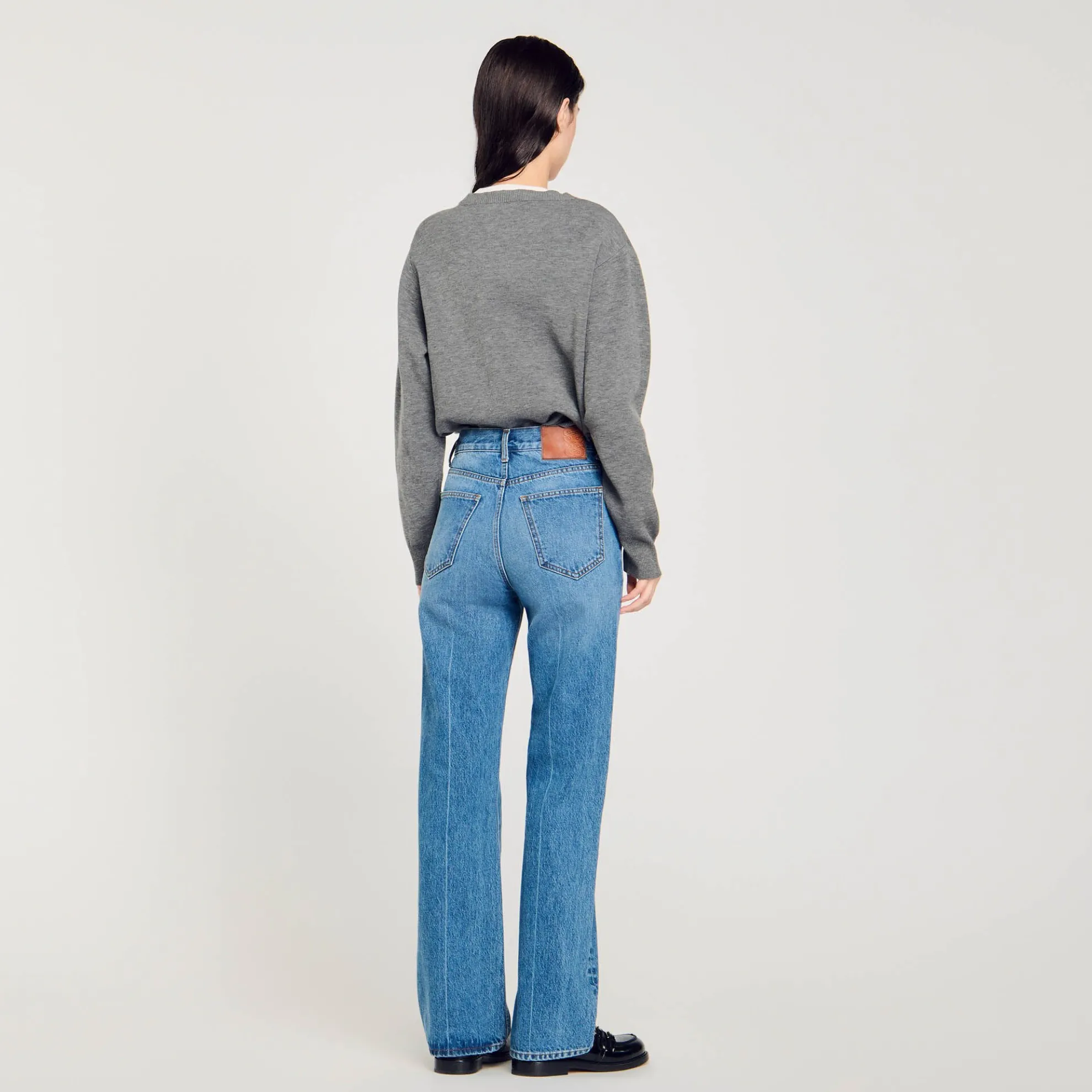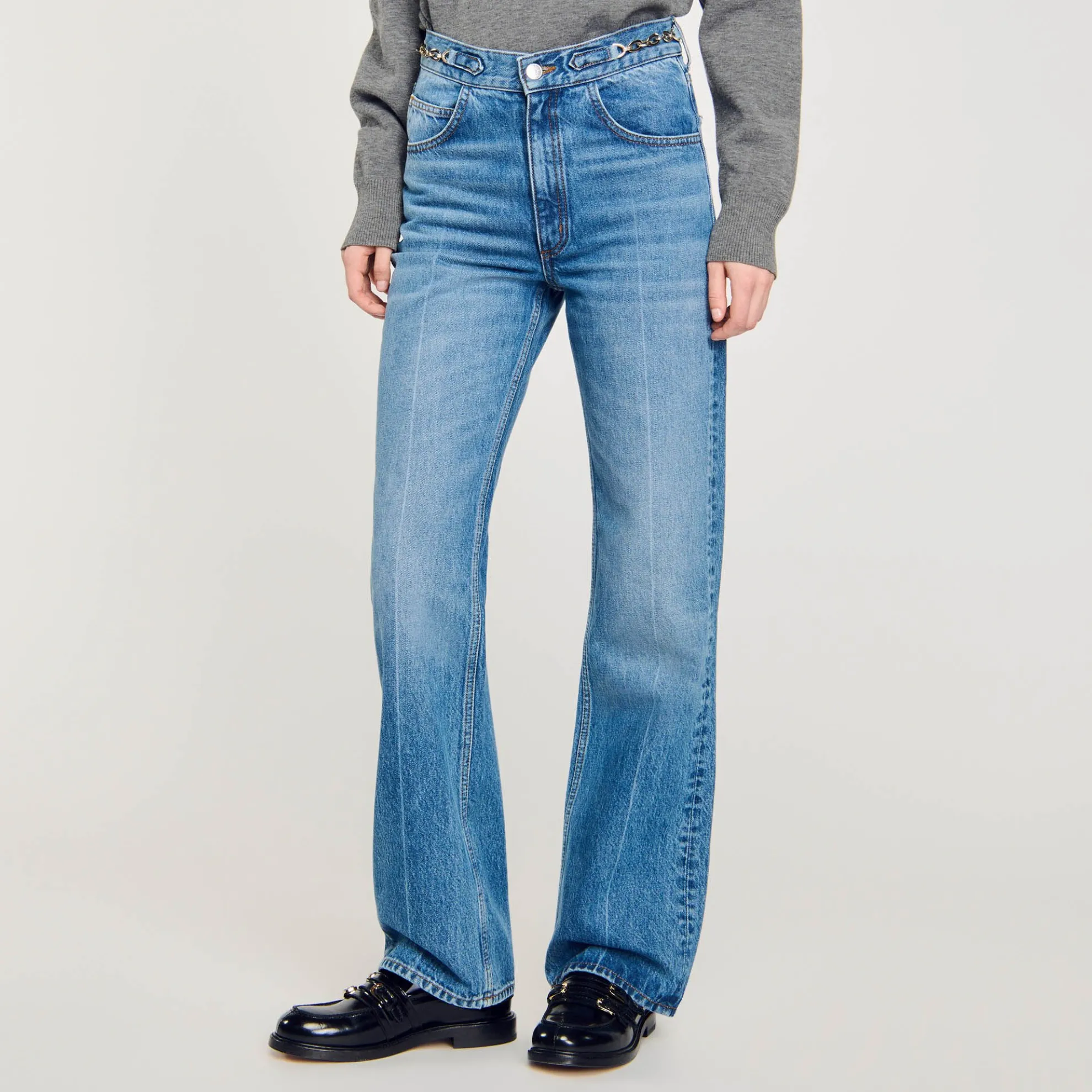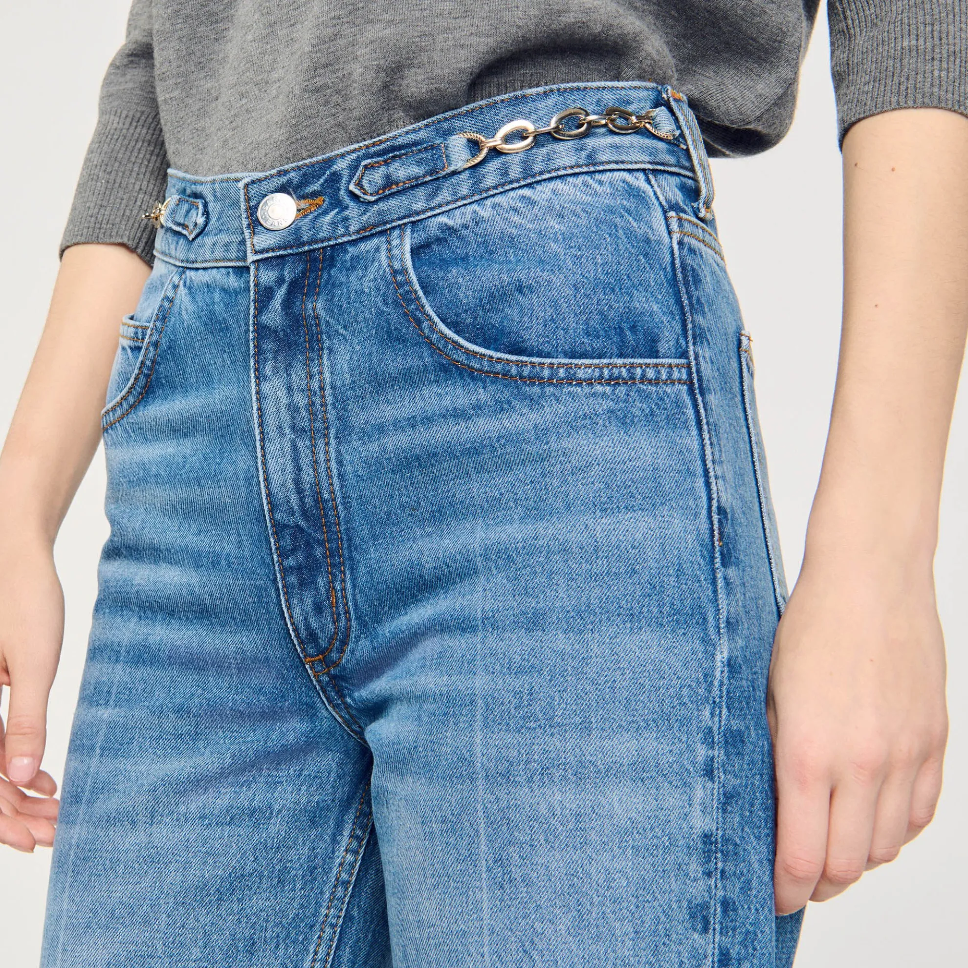 Wijdvallende jeans van verwassen denim met vijf zakken, riemlussen en kettingdetails aan de zijkanten.