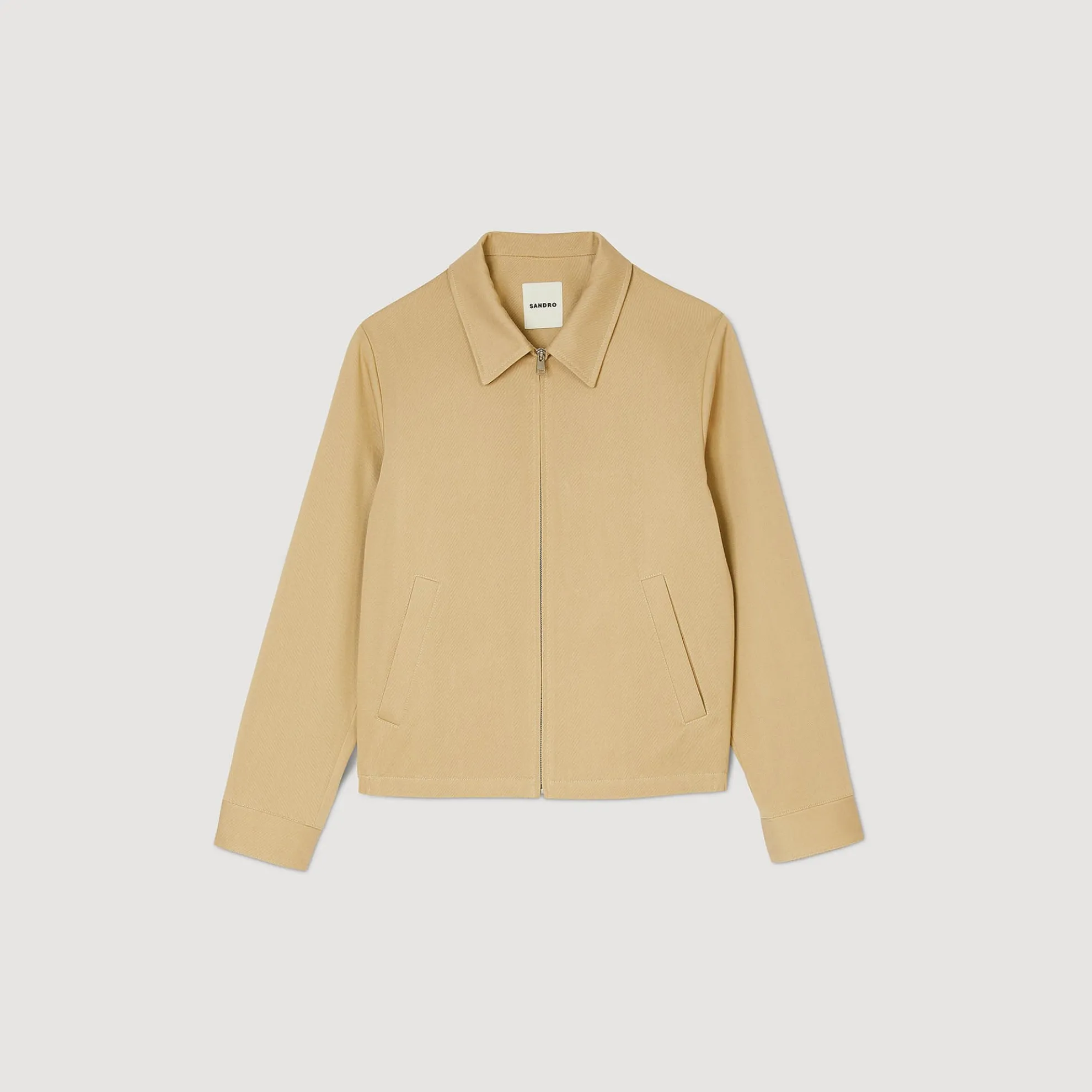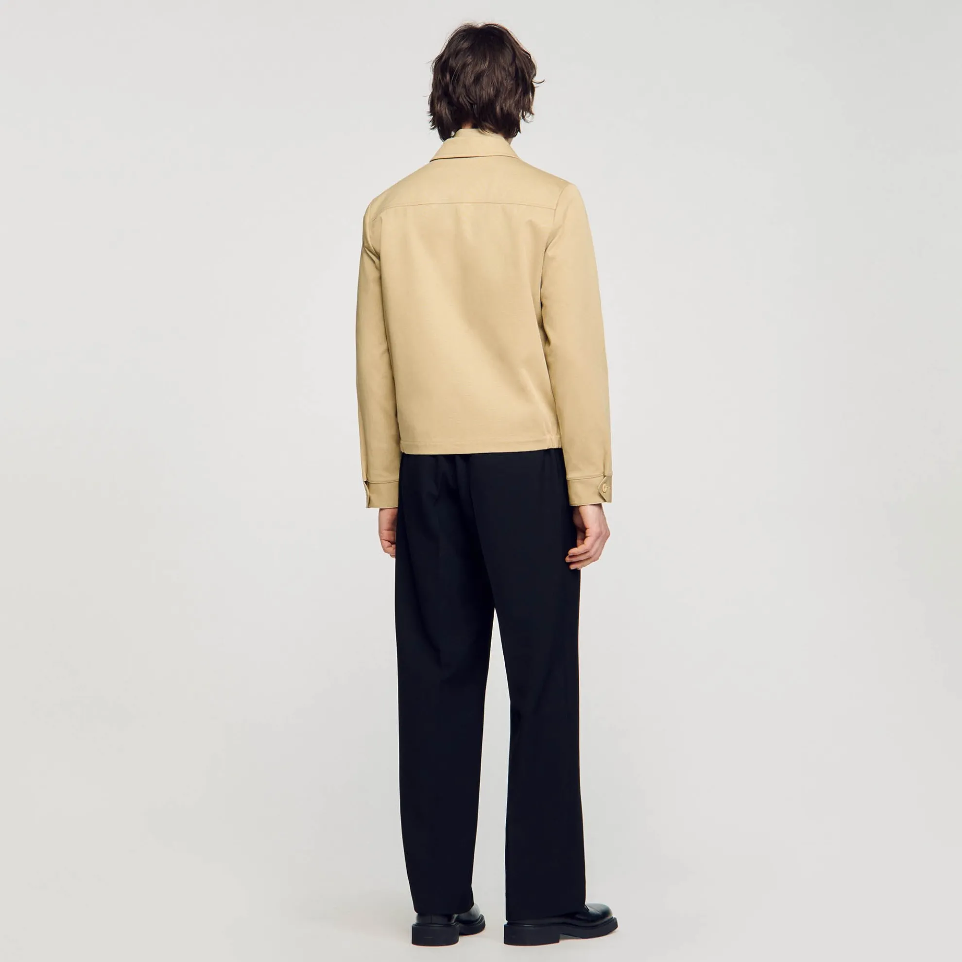 Katoenen jack met een kraag, een ritssluiting, lange mouwen met manchetten met knopen en paspelzakken.