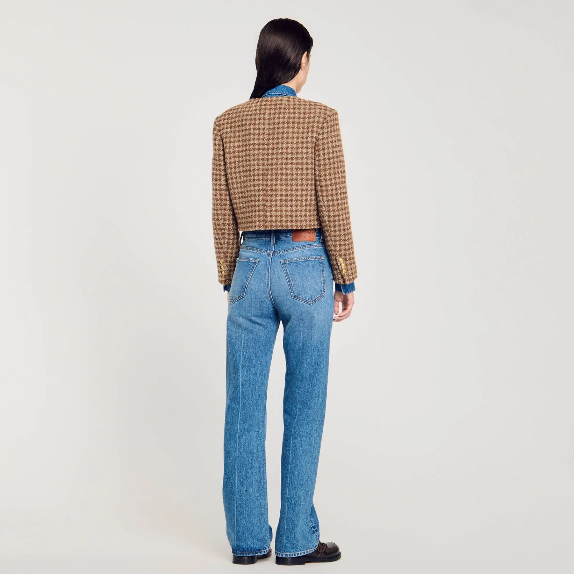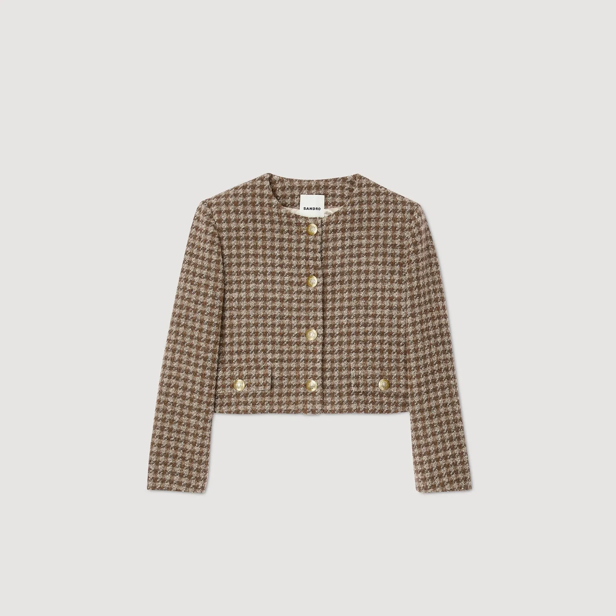 Kort, gestructureerd geruit jasje met sierknoopsluiting, lange mouwen en klepzakken aan de zijkanten.