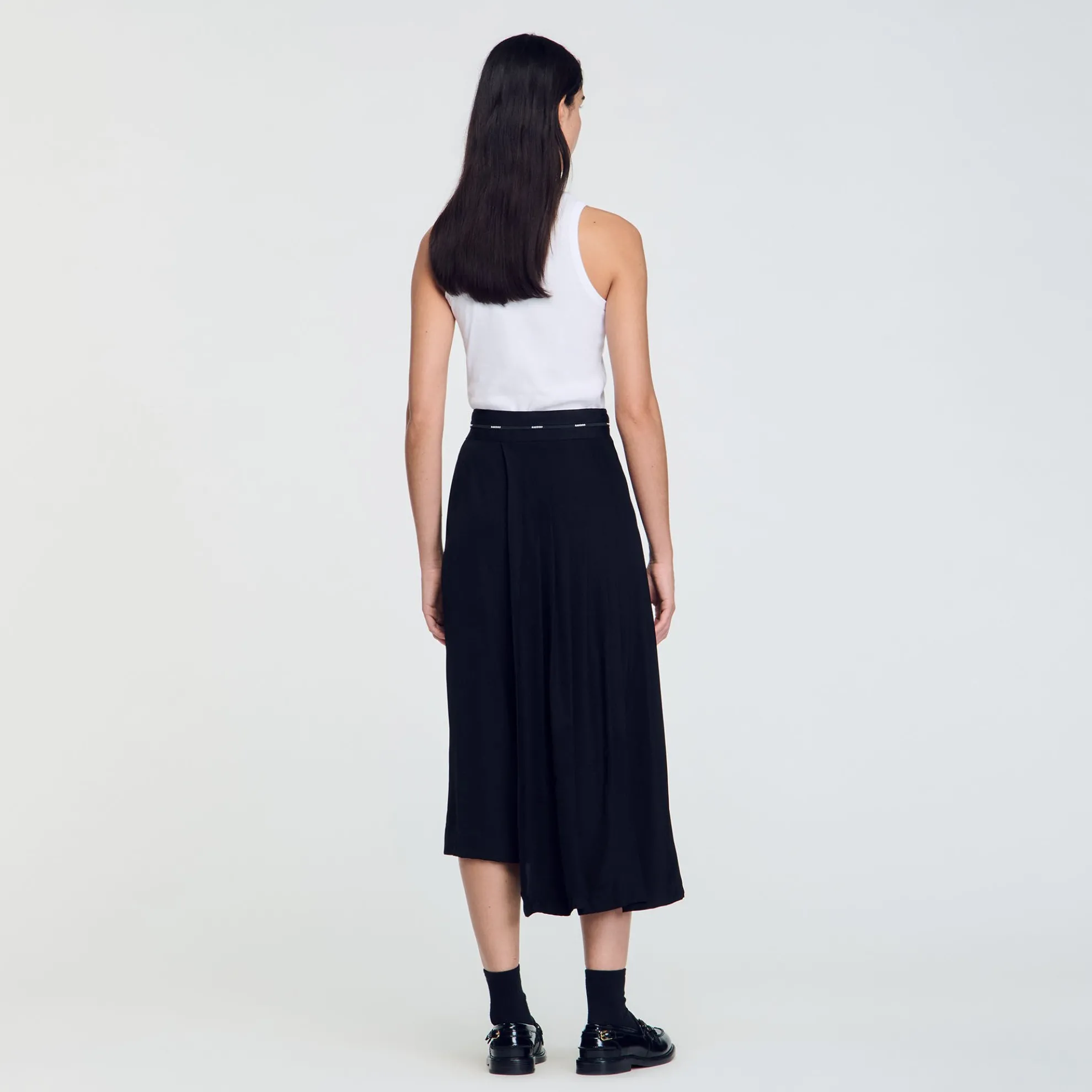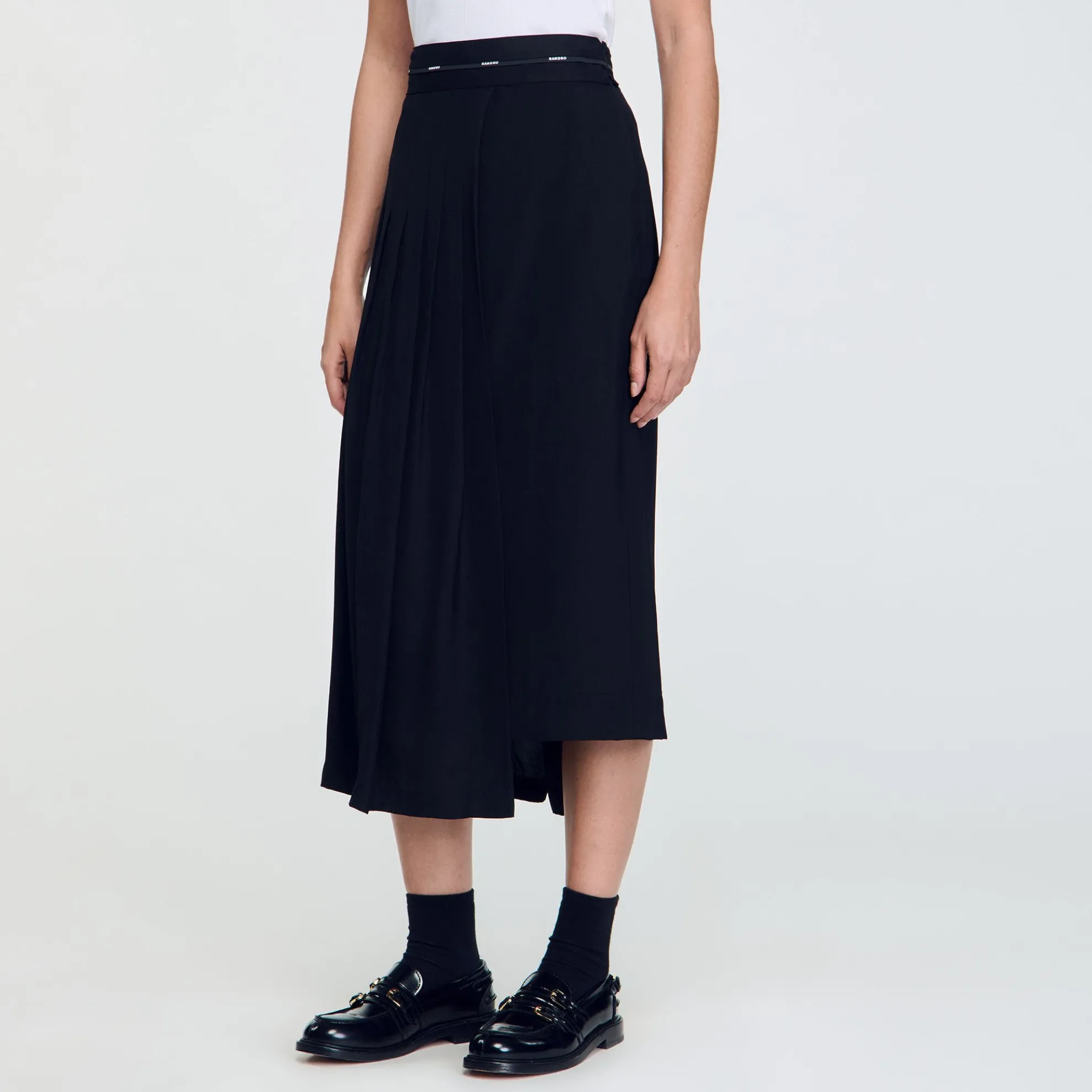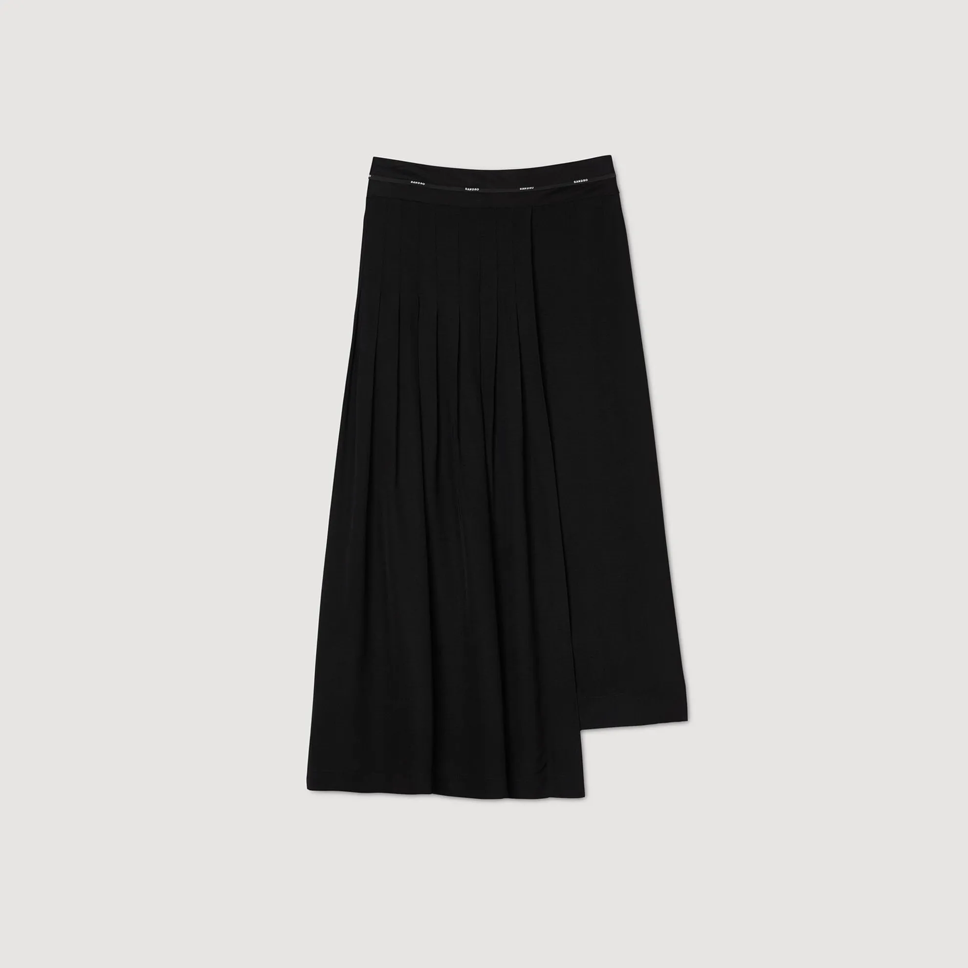 Asymmetrische lange rok met zijsplit en band in de taille met SANDRO galon.