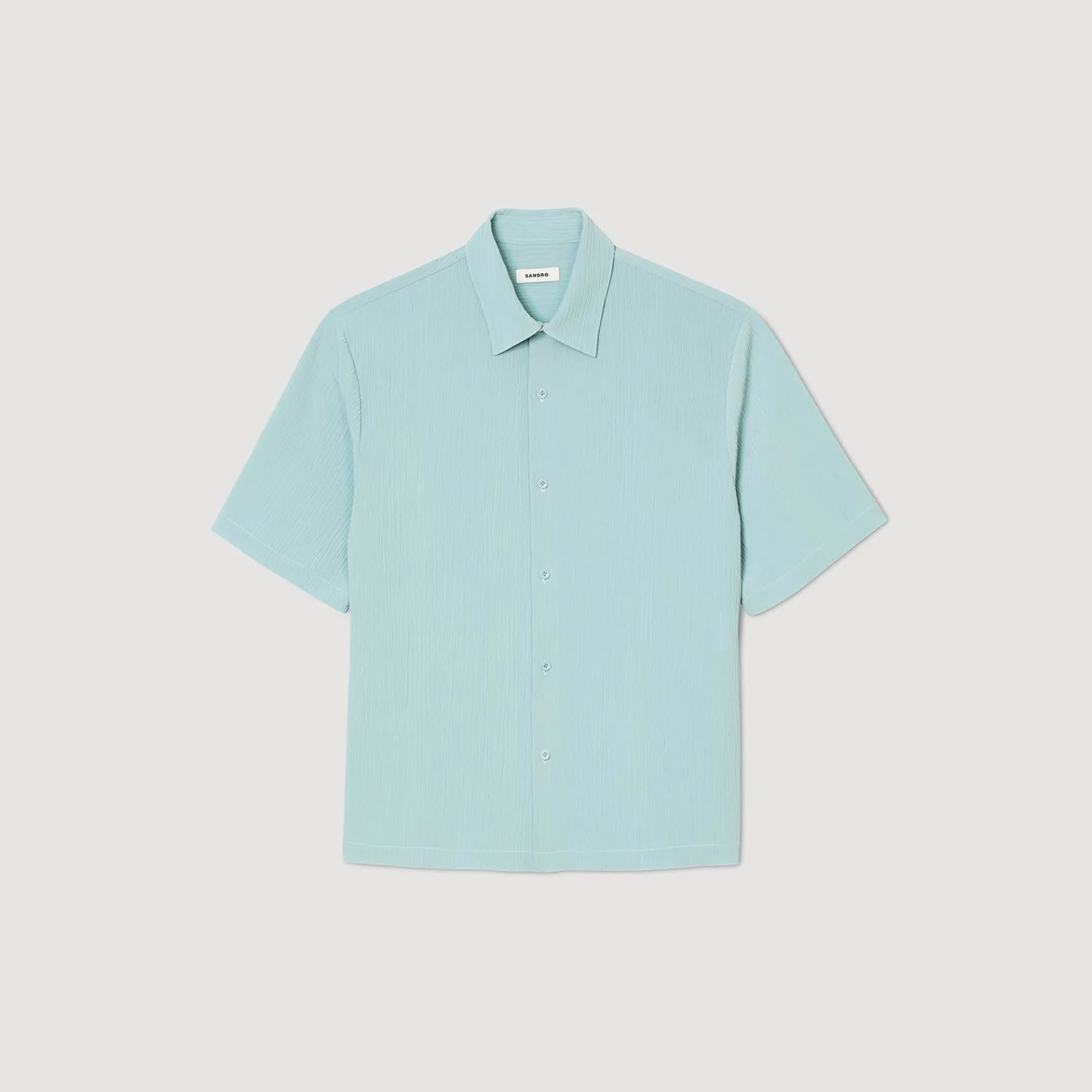 Soepel en oversized overhemd van geplooide stof met een klassieke kraag, korte mouwen en knoopsluiting.
