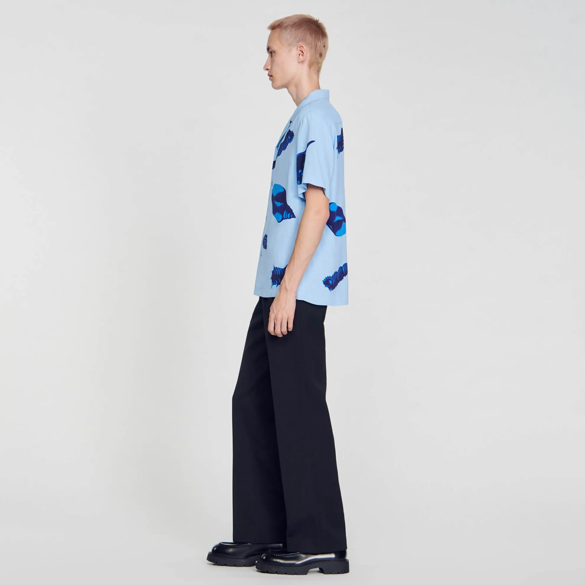 Overhemd met korte mouwen, een haaienkraag met knoopsluiting en een schelpenprint.