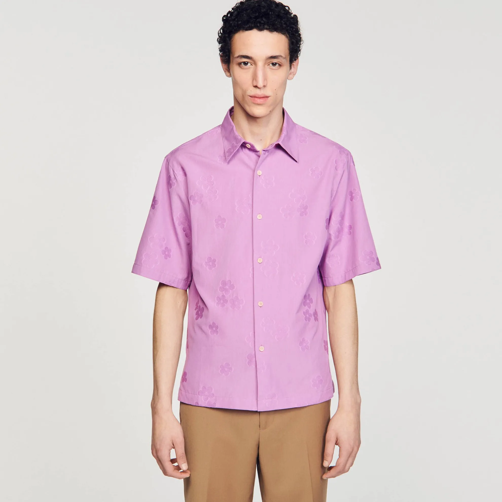 Oversized katoenen overhemd met jacquard met bloemmotief, overhemdkraag, korte mouwen en knoopsluiting.