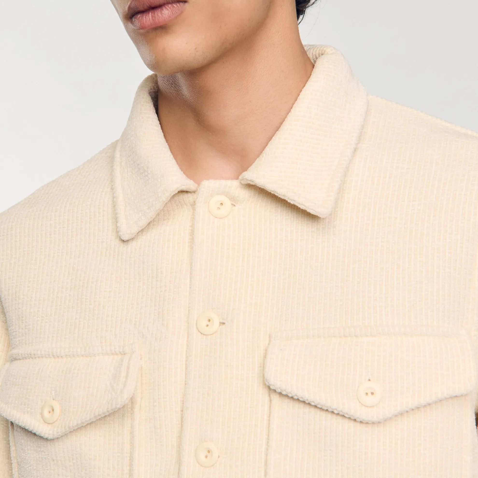 Ribfluwelen overshirt voorzien van een klassieke kraag, lange mouwen met drukknopen, een drukknoopsluiting en klepzakken.