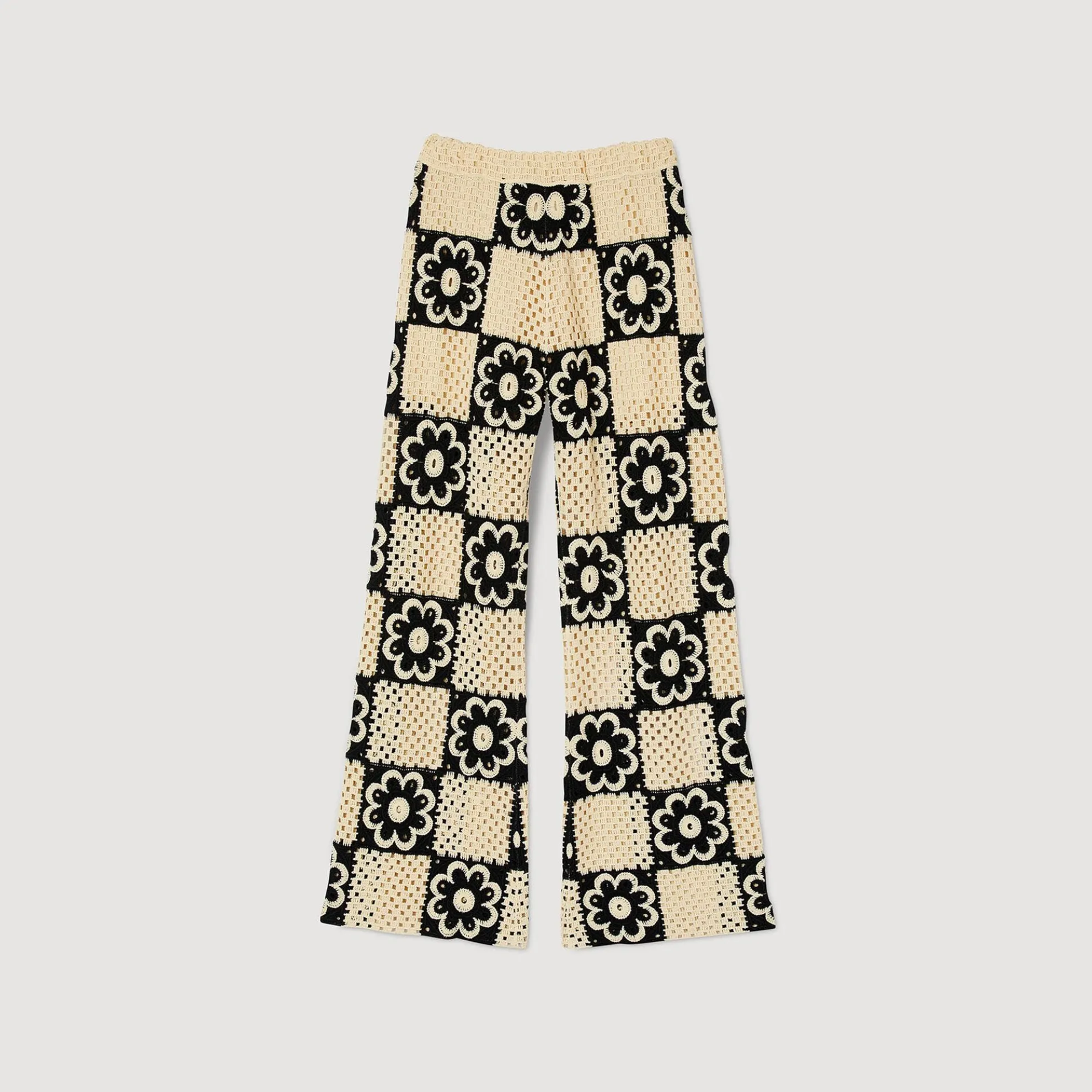 Pantalon van gehaakt breisel met contrasterend bloempatroon, elastische tailleband en een short als voering.