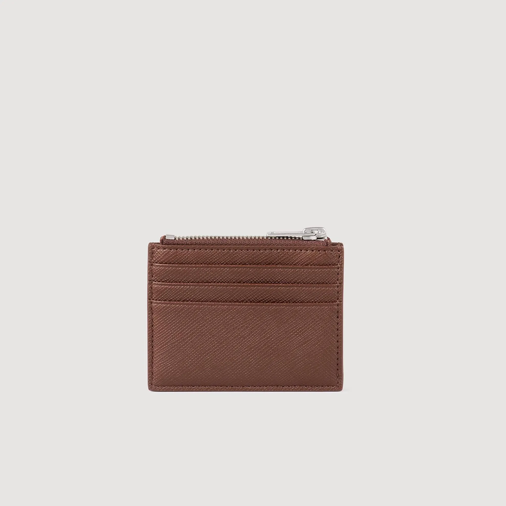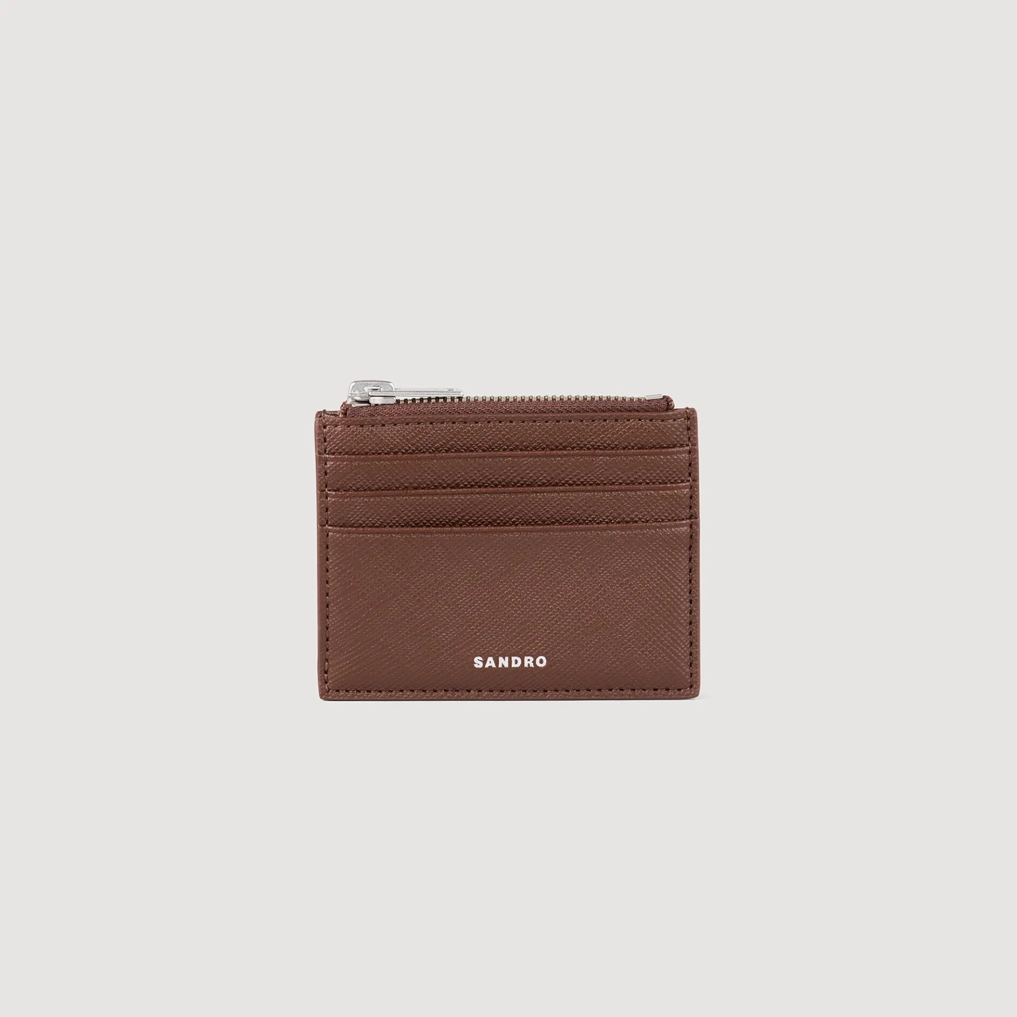 Pasjeshouder van synthetisch leer met Saffiano motief en een kenmerkend SANDRO-logo in reliëf, 3 kaartsleuven voor pasjes en een ritsvak.