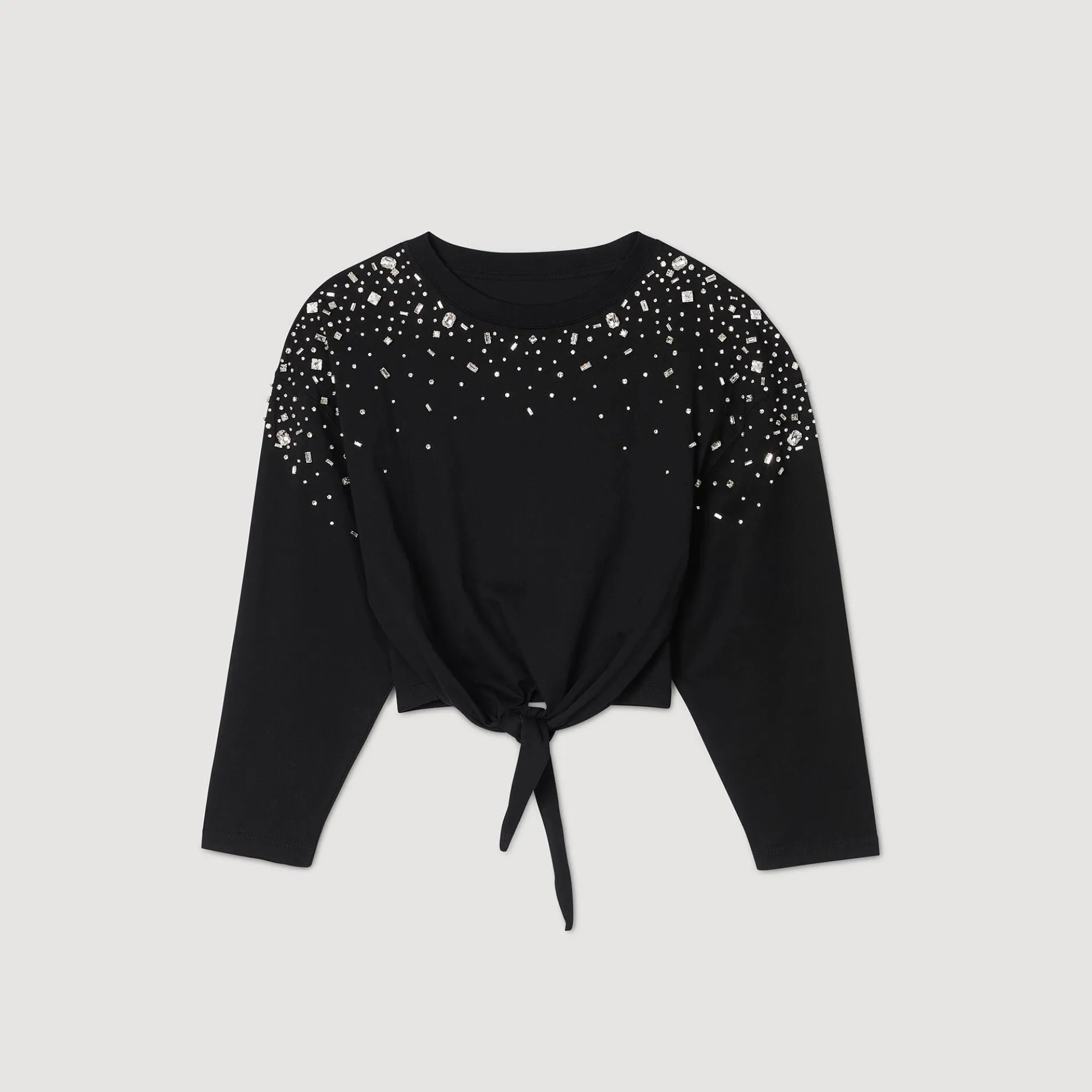 Strik T-shirt met lange, wijde mouwen versierd met geborduurde stras.