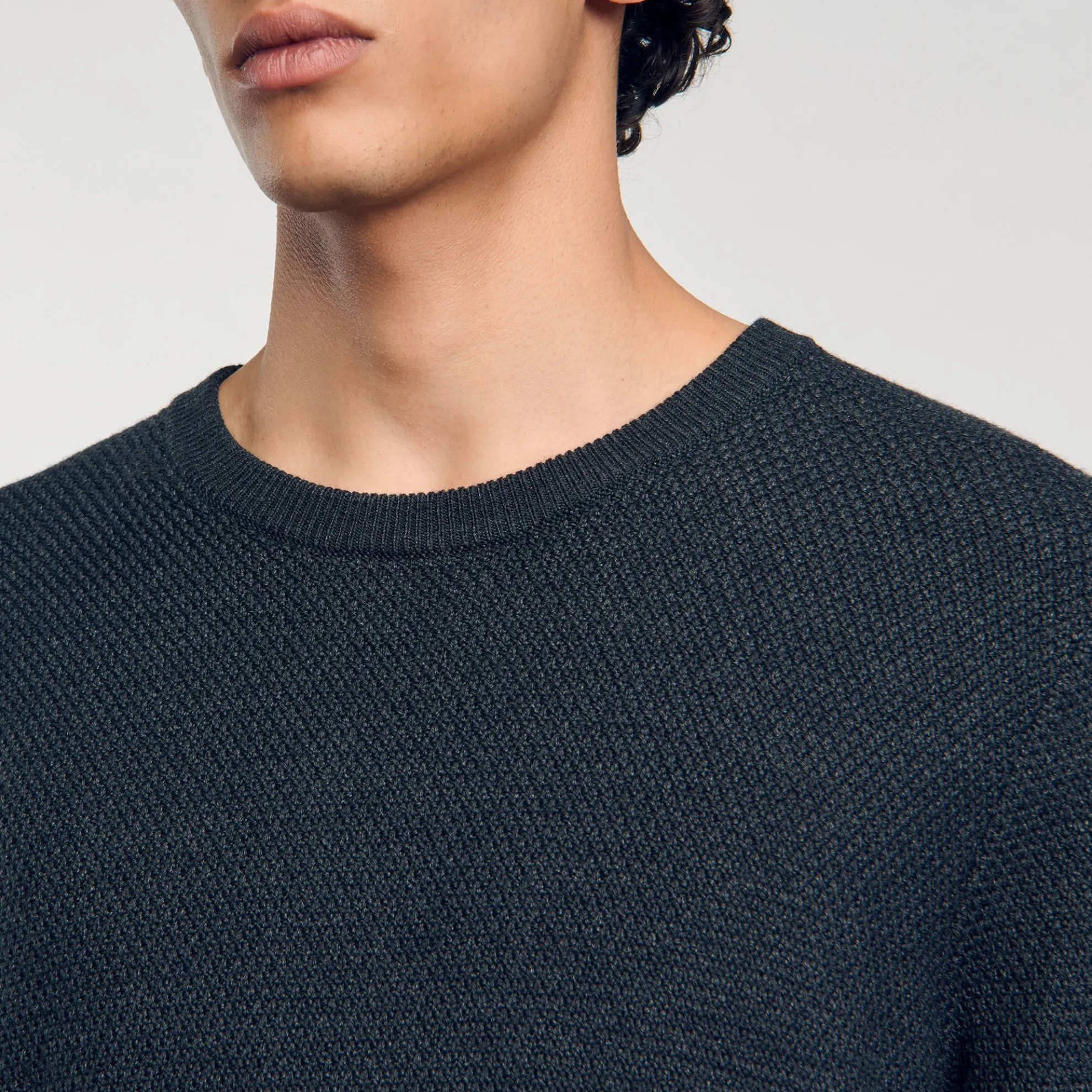 Trui Sandro Heren • Trui gebreid met siersteken • Ronde halslijn • Geribde boorden • Lange mouwen Voor een meer oversized look raden we aan om een maat groter te nemen. De wol in dit model is afkomstig van extensieve veehouderijen die het dierenwelzijn respecteren en bijdragen aan de instandhouding van de lokale biodiversiteit. Sandro zet zich in voor meer verantwoorde mode. In het kader van ons traceerbaarheidsproject met Fairly Made geven we op een geheel transparante wijze informatie over de herkomst, productie en milieu-impact van onze kleding. Alle stappen in het fabriceren en realiseren van deze trui zijn uitgevoerd in fabrieken in China die sociaal gecertificeerd zijn door zeer strenge onafhankelijke keurmerken, en maken gebruik van verantwoorde wol. De trui heeft een traceerbaarheidsscore van: 4.1/5.